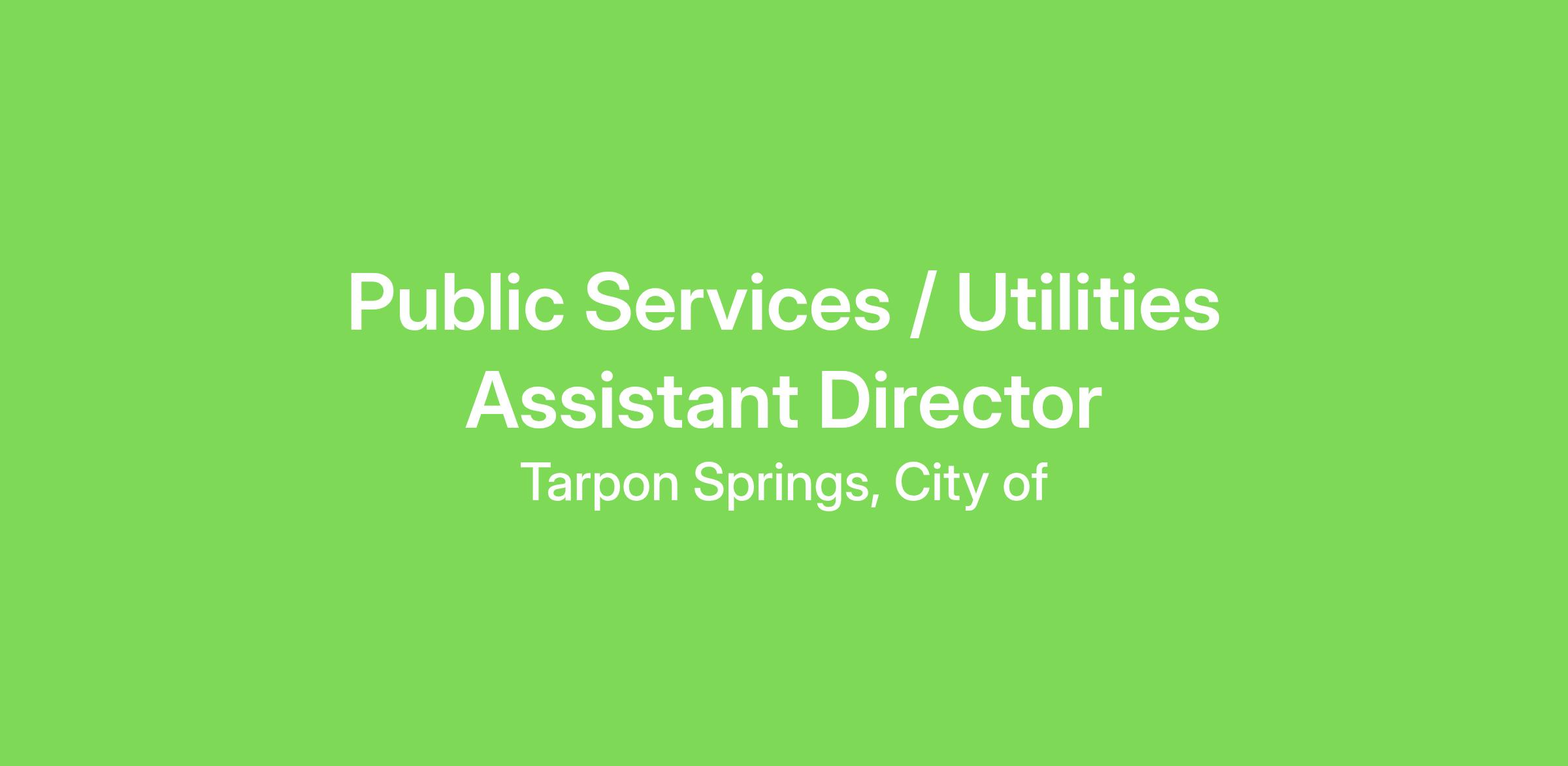 The City of Tarpon Springs is looking to add an Assistant Director to our dynamic leadership team!