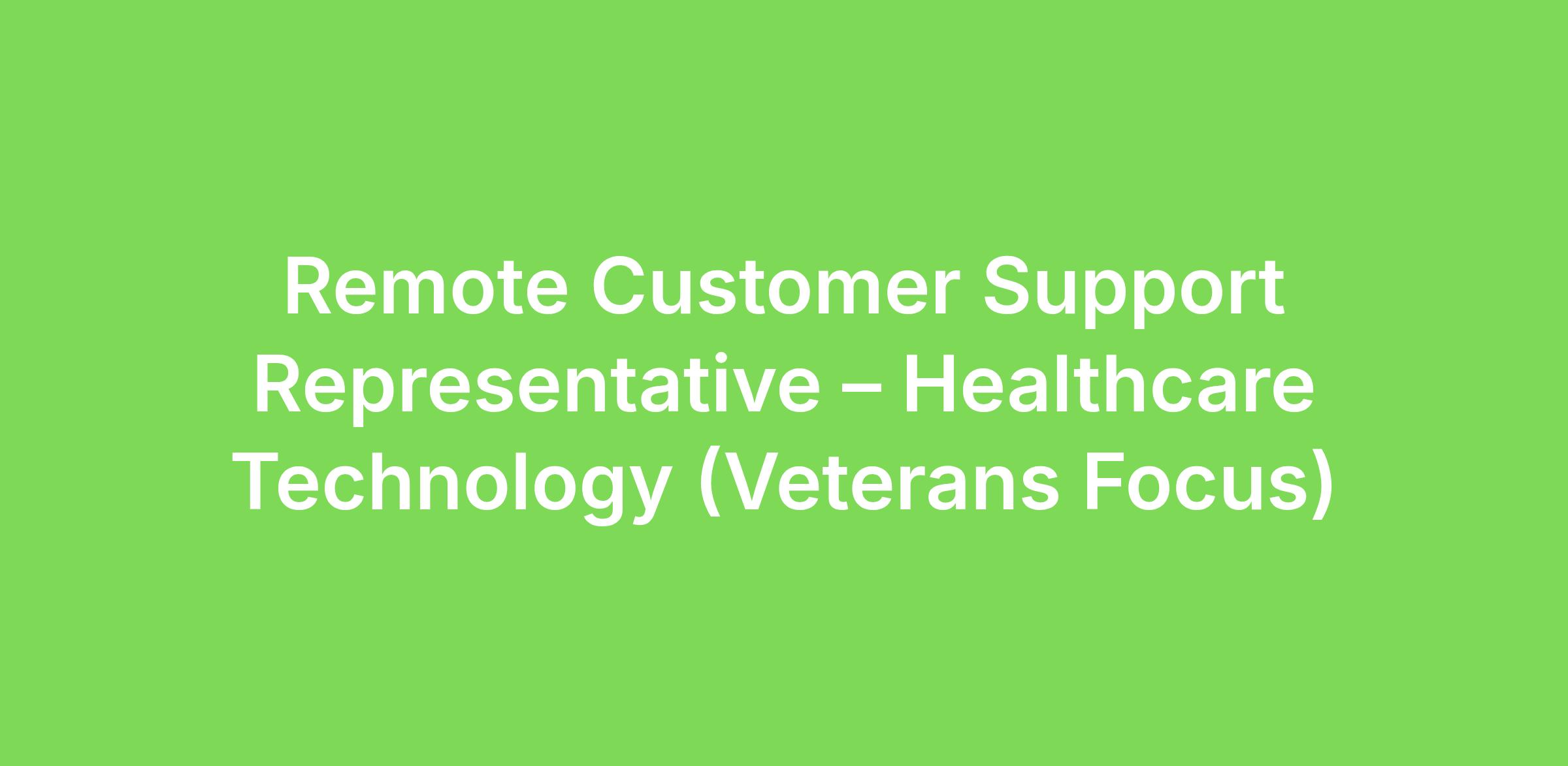 This role is especially well suited for individuals passionate about serving veterans and contributing to work that has a meaningful impact. Strong communication and customer support skills are essential, with technical expertise developed through training and hands on experience.