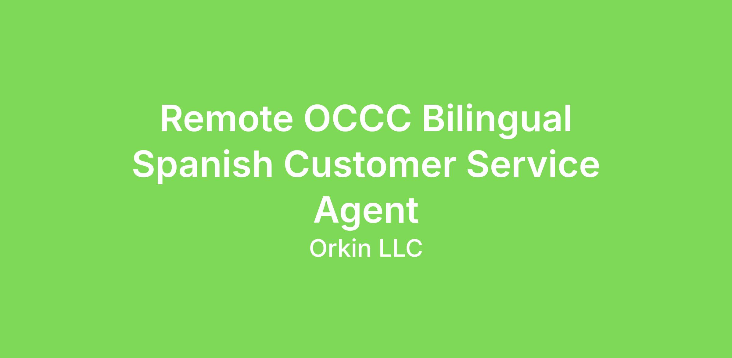We are seeking talented SPANISH BILINGUAL PROFESSIONALS for our remote Orkin Customer Contact Center. Must have the ability to work a flexible schedule, including days, evenings, weekends, and/or holidays to ensure we have consistent support for our customers.