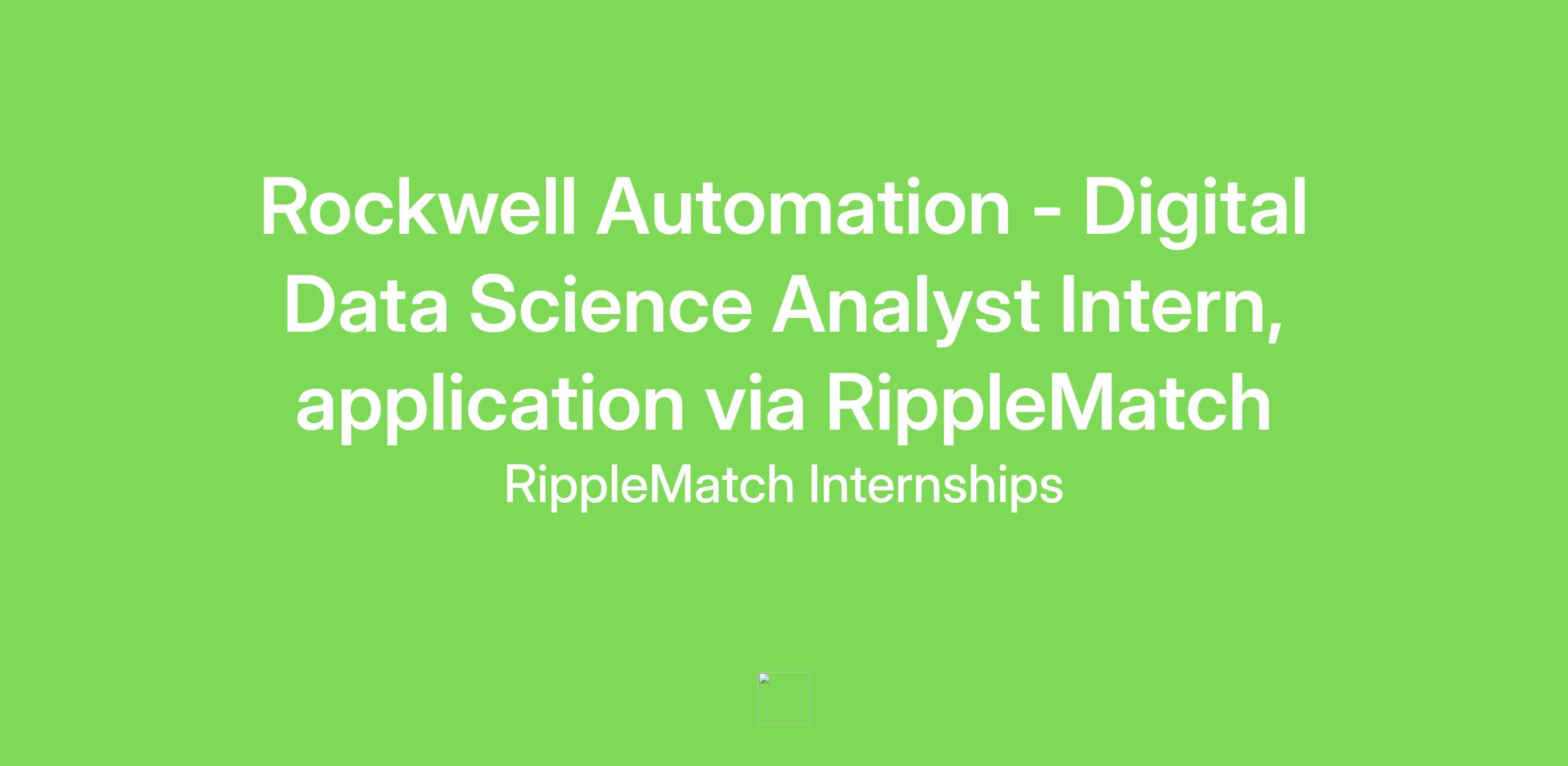 Rockwell Automation - Digital Data Science Analyst Intern, application via RippleMatch