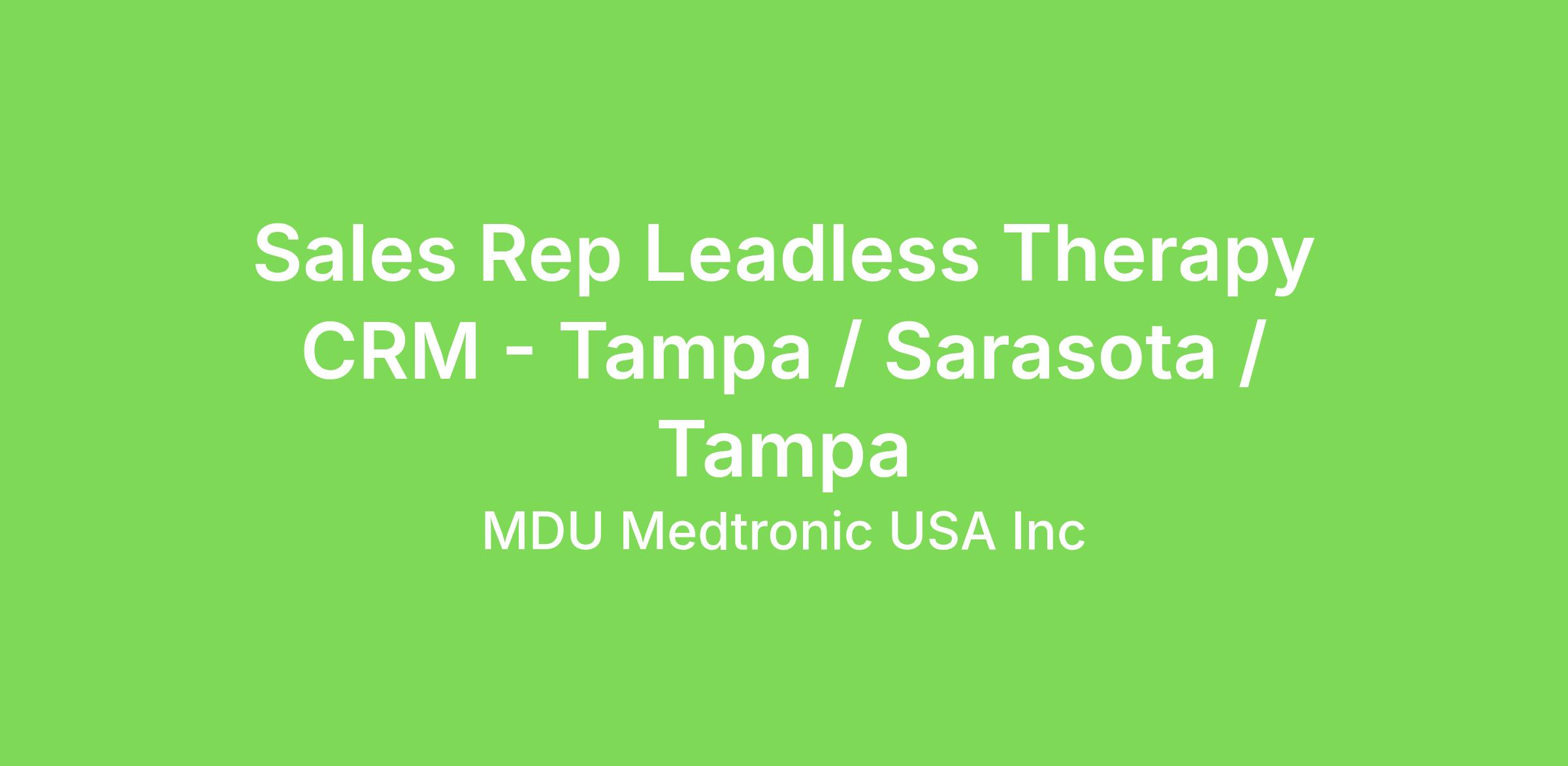 Sales Rep Leadless Therapy CRM - Tampa / Sarasota / Tampa