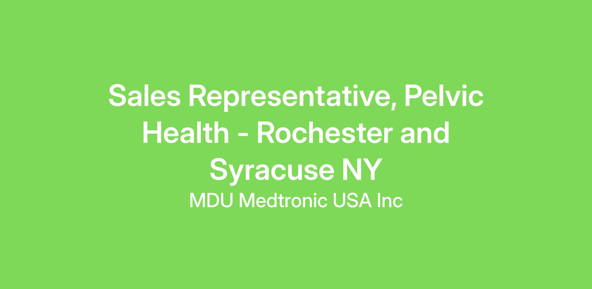 The Medtronic Pelvic Health Sales Representative manages territory base business and growth by initiating, supporting and developing strategic implanting centers and assisting in developing key referral networks. In certain geographies this role will also have primary responsibility for development of referral networks. The Pelvic Health Sales Representative is also expected act as primary account/implanter relationship contact for assigned territory’s customer needs including account level reimbursement responsibility. This includes coordination of all support activities and development of sales partnerships with distribution alliances.