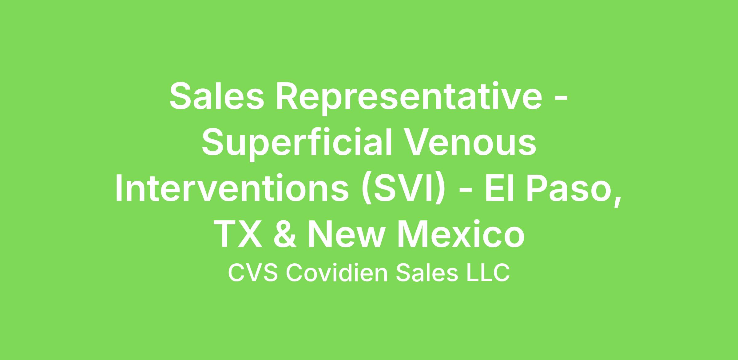 To grow sales and market share for an assigned territory by promoting, selling and servicing Superficial Venous Intervention (SVI) products. Build business by aggressively developing new accounts and driving therapy adoption of VenaSeal and Closure System product portfolio across the continuum of care for Venous Disease. Practice good, ethical territory management in terms of organization, planning, administration and expense planning and control. Train medical staff on products and procedures. Meet expectations as defined by Sales Management.