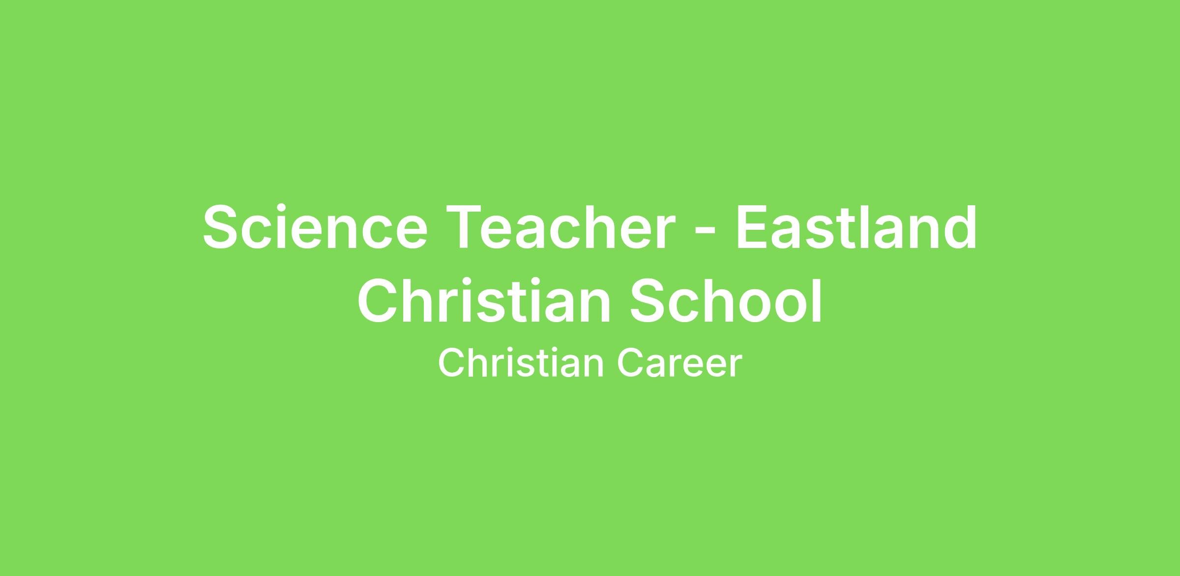 Science Teacher - Eastland Christian SchoolScience Teacher for Middle and High School