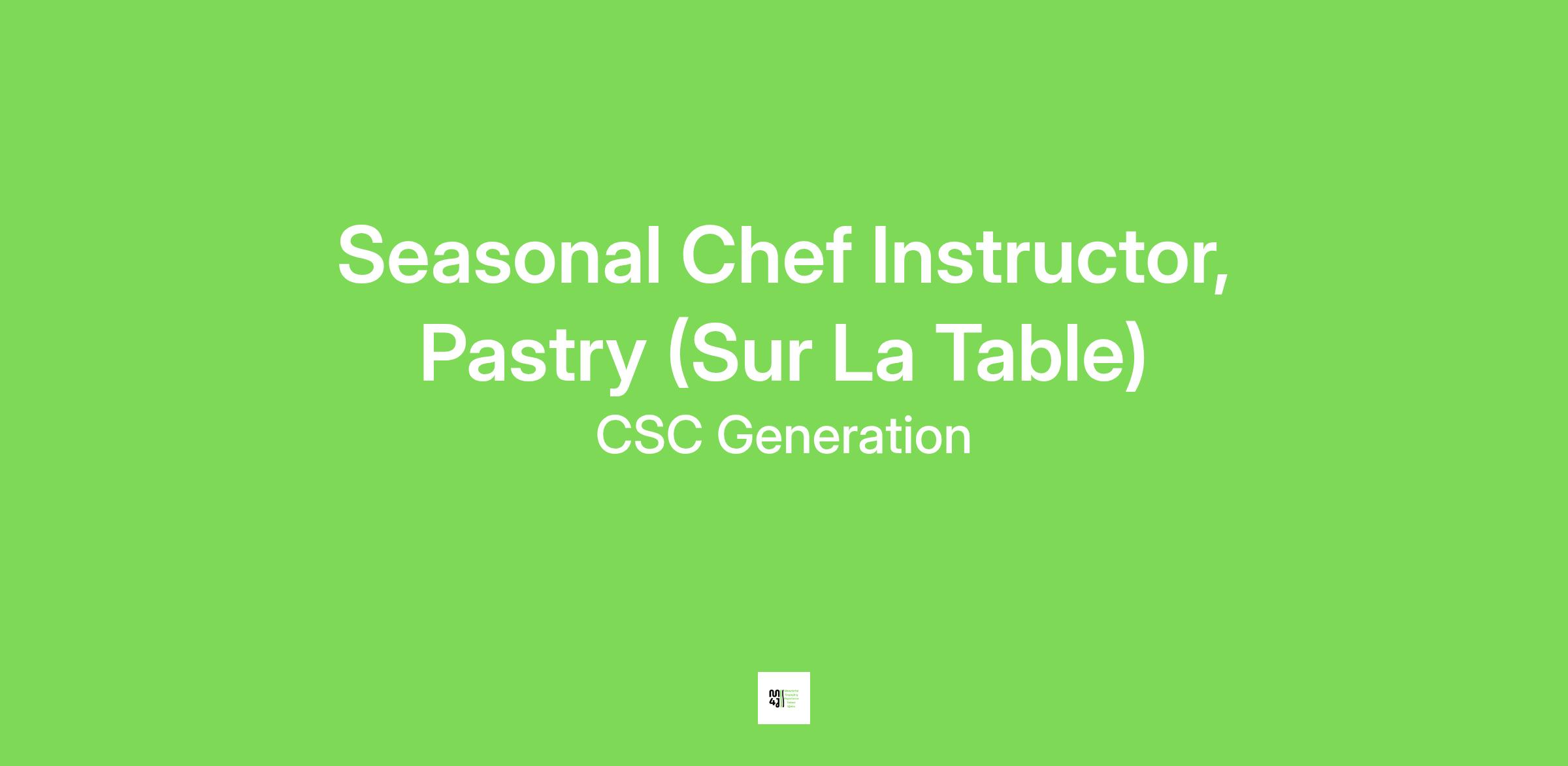 As a Seasonal Chef Instructor, Pastry at Sur La Table, you are the in-store expert and advocate for all things baking and pastry arts. You deliver #bestincenter service, a company-wide standard for excellence in service, by sharing specialized knowledge in pastry techniques, baking fundamentals, and personalized instruction that supports all company initiatives. The Seasonal Chef Instructor, Pastry plays a key role in inspiring a love for baking while driving sales of bakeware, mixers, and decorating tools through hands-on pastry classes and engaging culinary instruction.