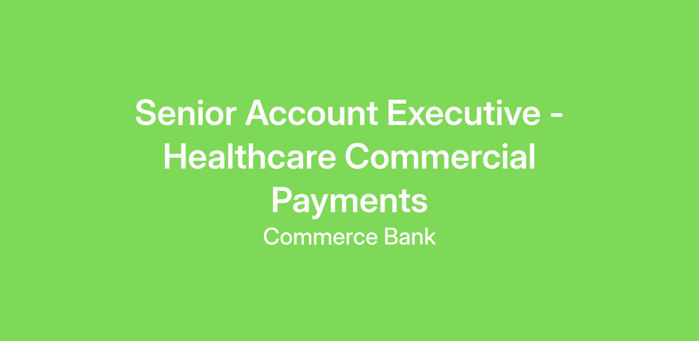 Commerce Bank is seeking a motivated and customer focused individual for a Sr. Account Executive opportunity supporting our Healthcare sector. The Sr. Account Executive position serves as an ambassador of Commerce Bank to our customers. These positions are responsible for selling Automate Accounts Payable Solutions and Card Payment Services to targeted companies in designated sales territories. These targeted companies may, or may not, have an established relationship with Commerce Bank. Each Account Executive will develop and establish relationships with “C” level associates within the Healthcare sector. To achieve the objectives of these positions, each Account Executive will initiate the use of various prospecting methods including cold calling, leveraging internal and external referrals, as well as through industry available networking groups. In addition to prospecting, each Account Executive must employ effective listening, problem solving, presentation, sales, relationship management and negotiation skills, while leveraging effective closing techniques to meet and/or exceed assigned sales goals. Account Executives will also be tasked to assist with the transitioning of new account sales to the internal Account Management Team following the start of implementation processes.