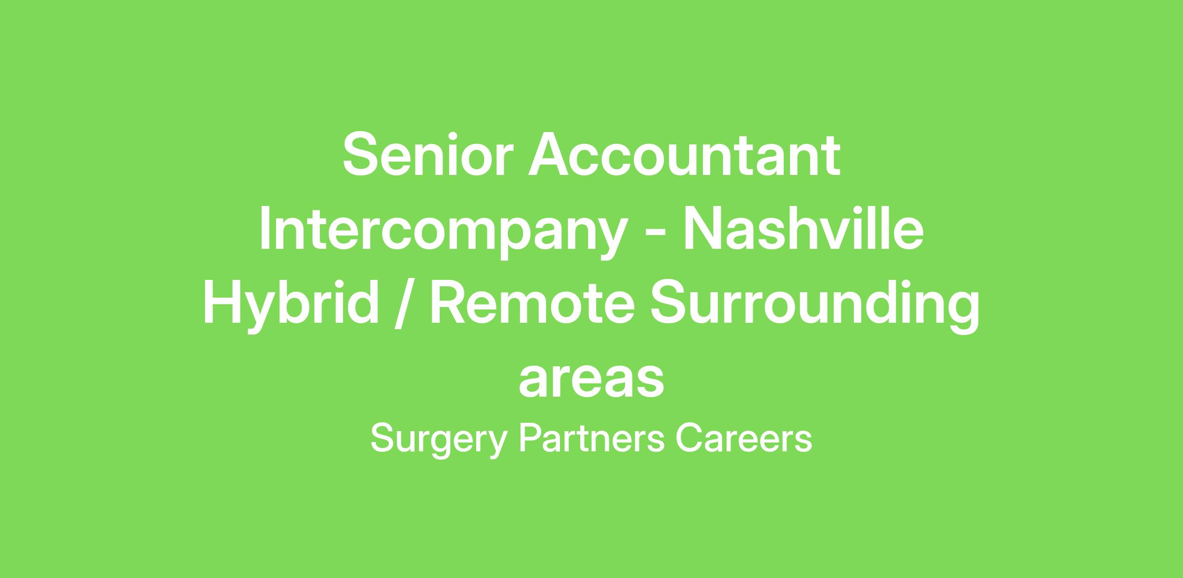 Intercompany Accounting Senior - Nashville- Hybrid/ Remote Surrounding areas