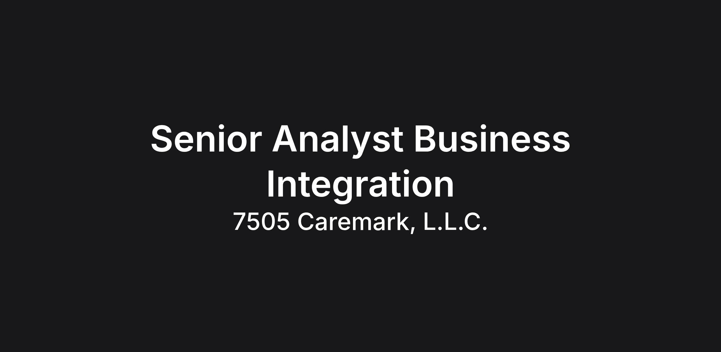 Senior Analyst Business Integration