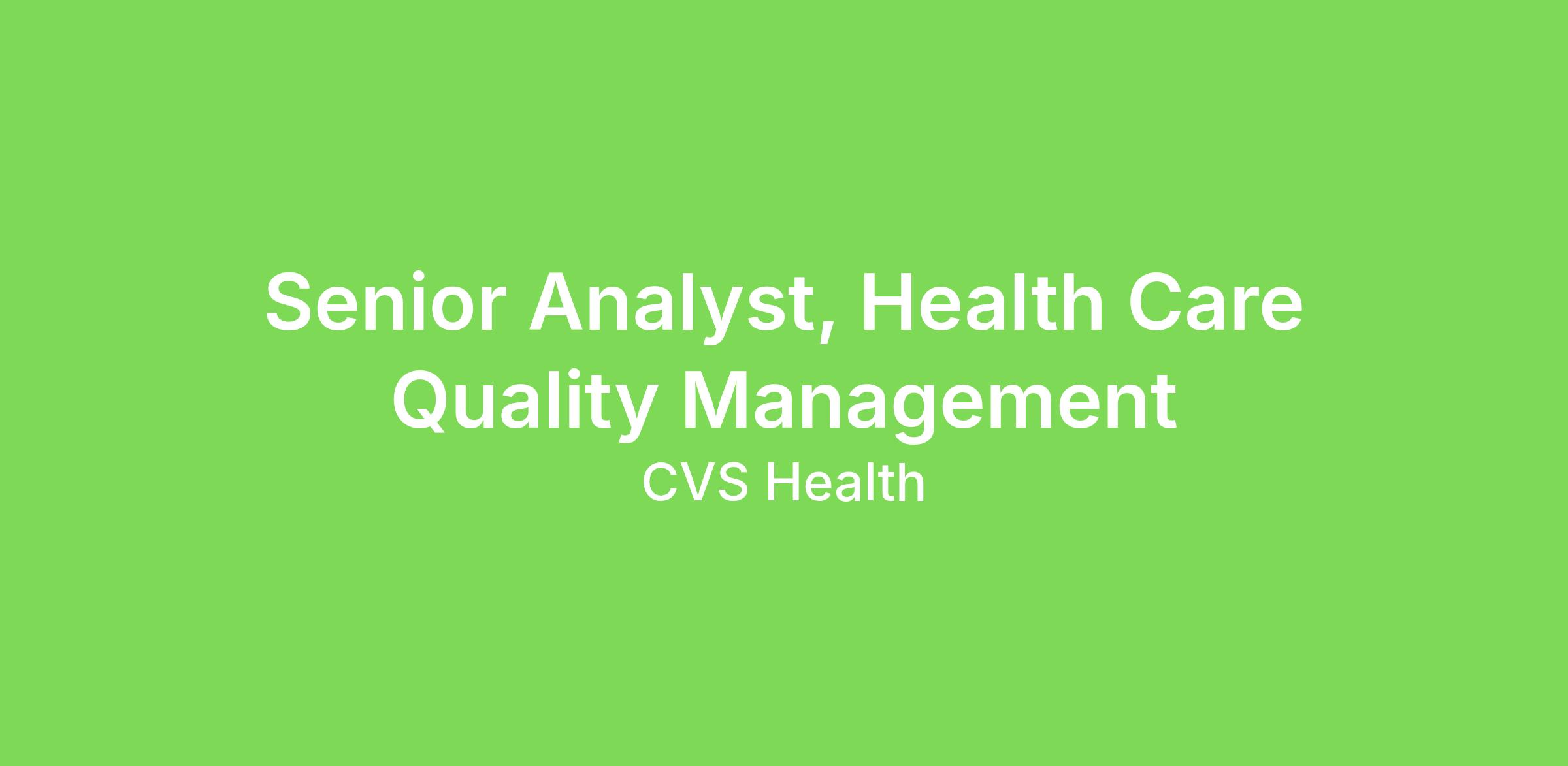Senior Analyst, Health Care Quality Management
