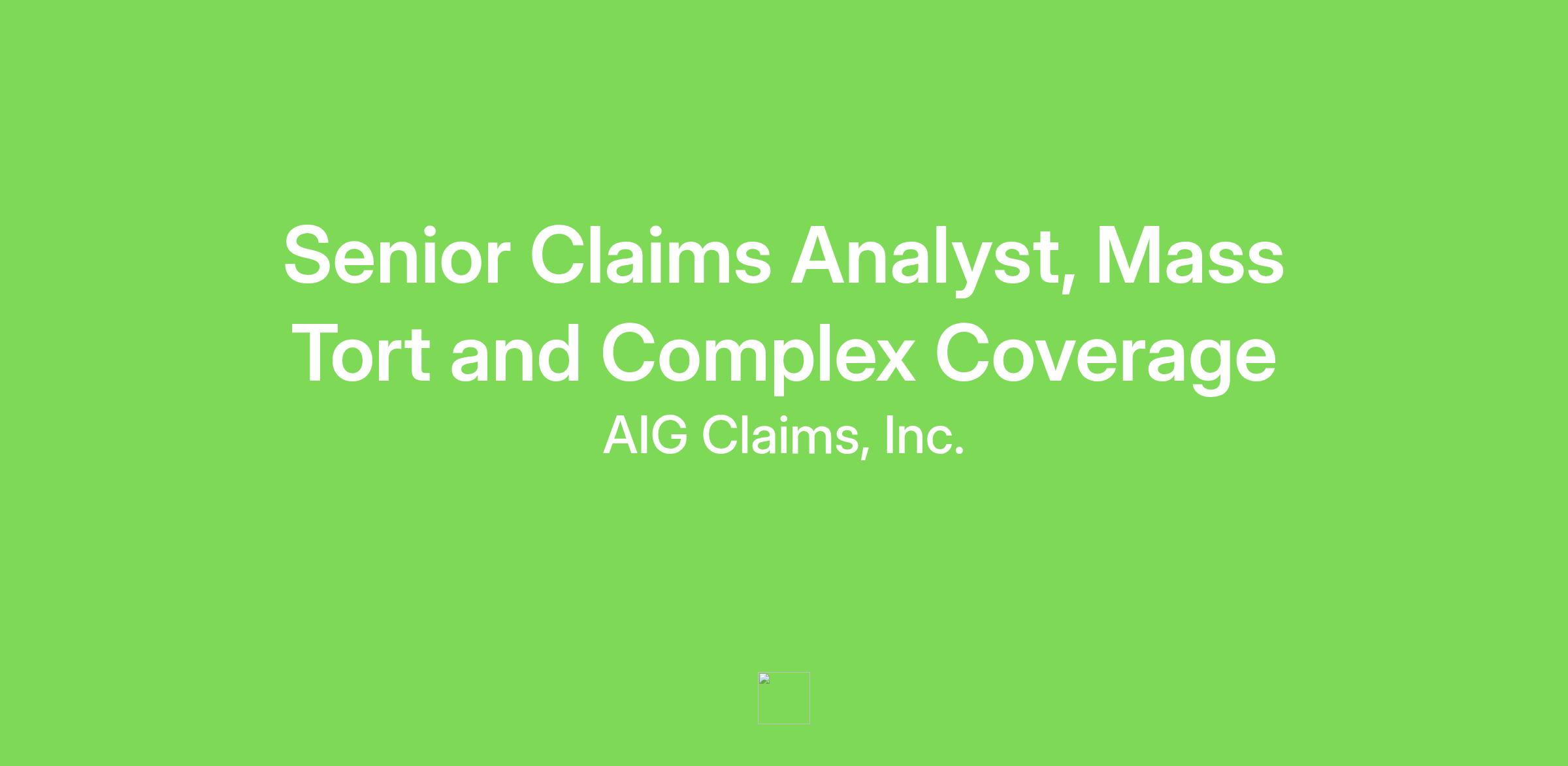 Senior Claims Analyst , Mass Tort and Complex Coverage