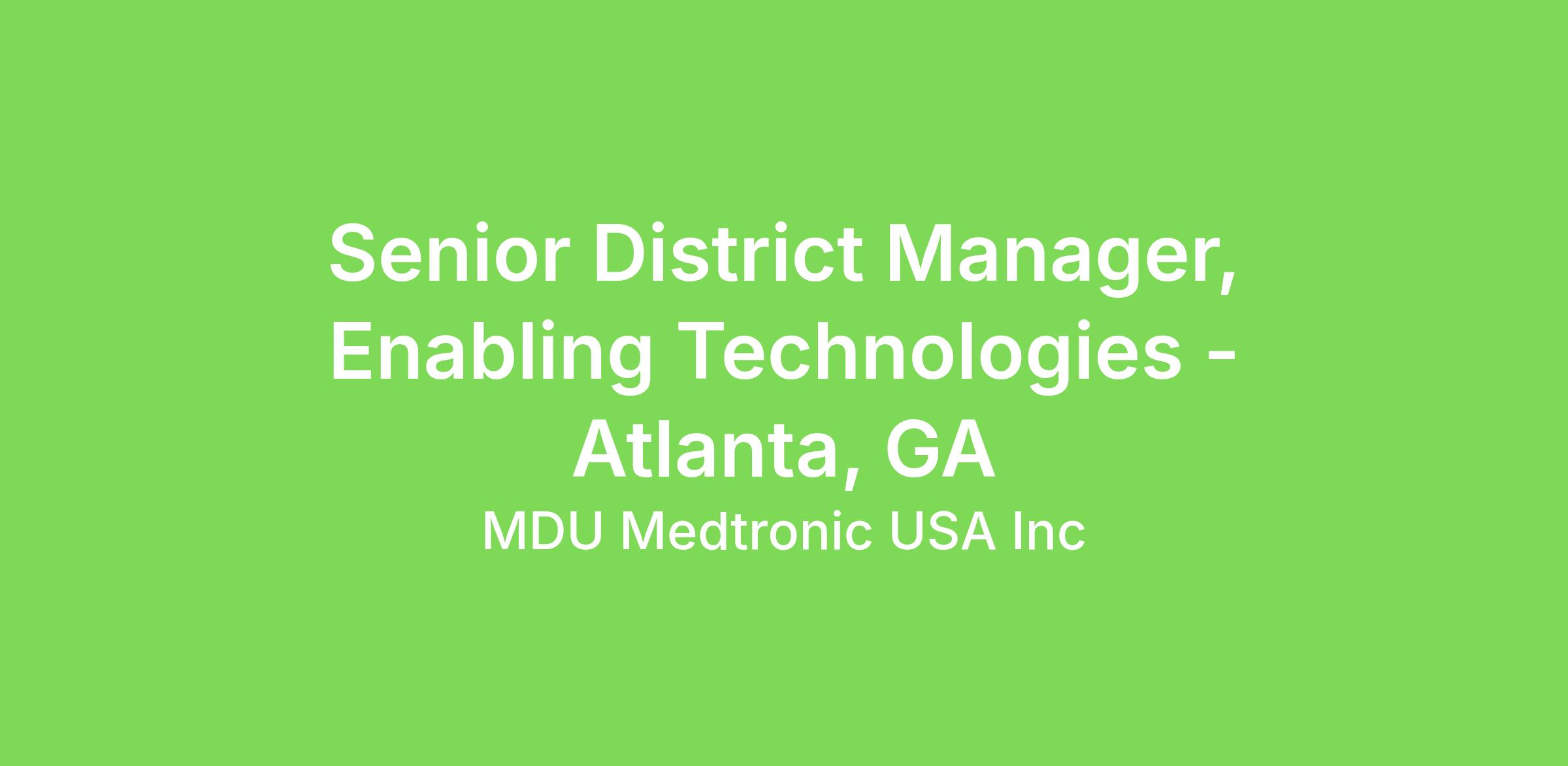 At Medtronic, the Senior District Sales Manager, Enabling Technologies manages the achievement of unit and revenue goals for assigned therapy products in an assigned district. Assists the district and region in achieving overall assigned therapy product sales and marketing objectives. Neuroscience seeks candidates who will meet our customer expectations by striving without reserve for the greatest possible reliability and quality in our products, processes and systems by being accountable, having a voice, and taking action. Performs all duties in compliance with Quality System.