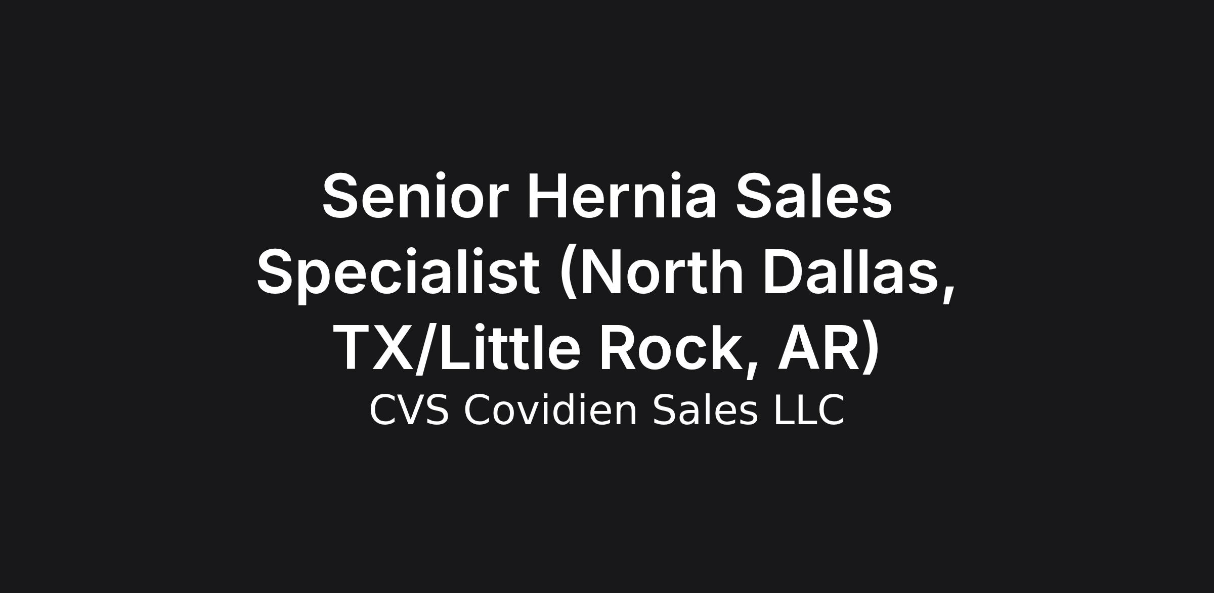 Senior Hernia Sales Specialist (North Dallas, TX/Little Rock, AR)