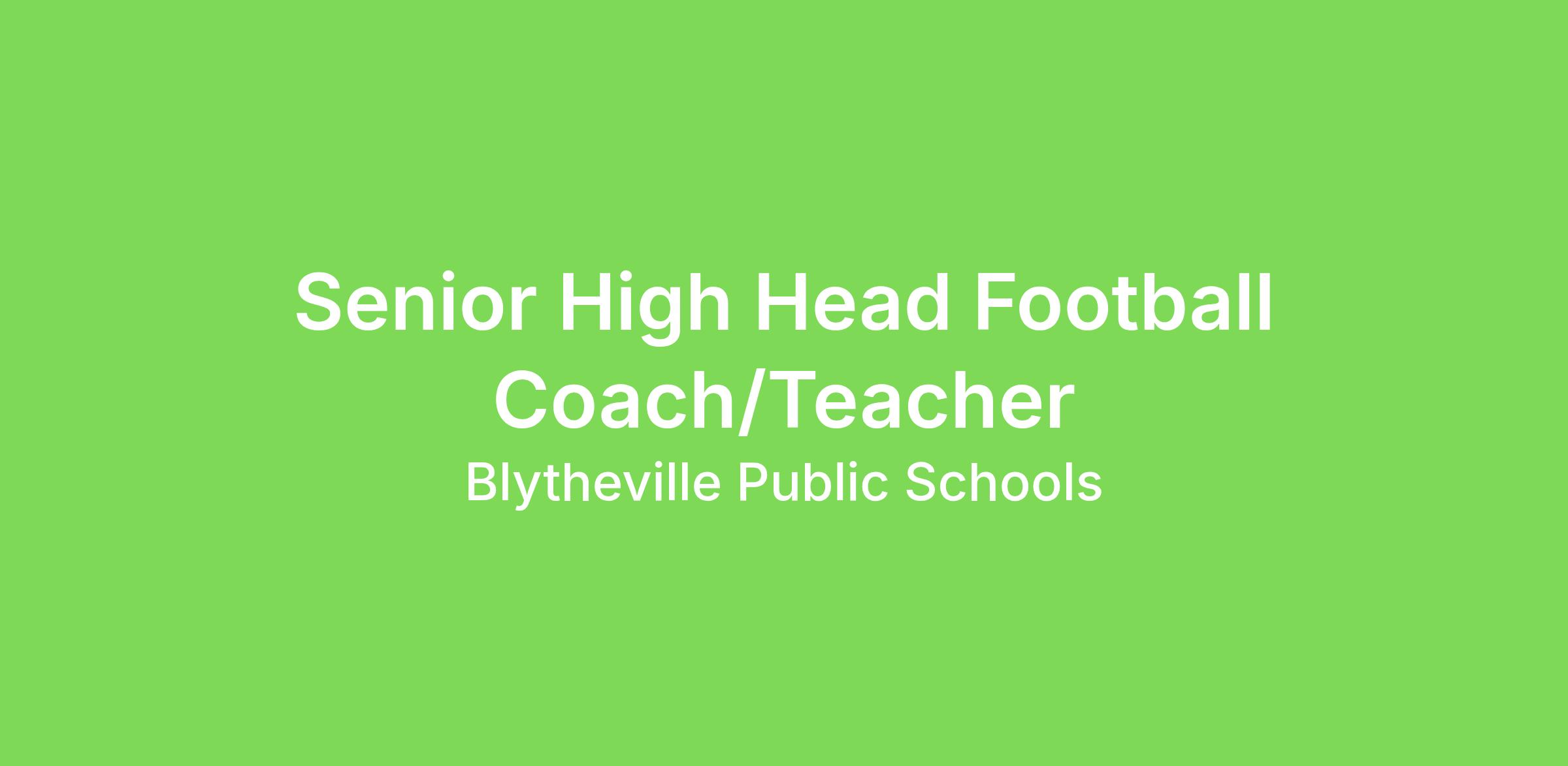 Senior High Head Football Coach/Teacher