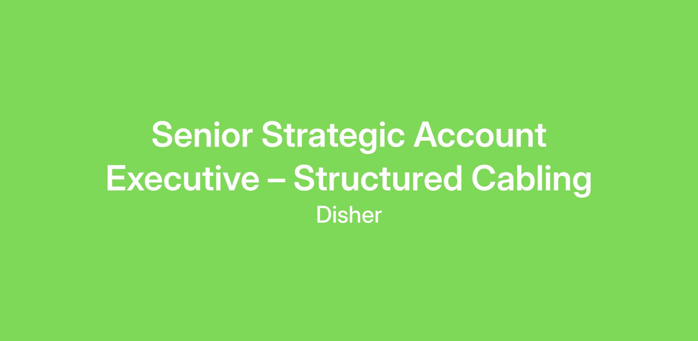 DISHER is partnering with an IT and hardware services company that is a leading provider of new and refurbished networking, telephony hardware, and data center cabling products, as well as full-service IT lifecycle solutions. As the largest secondary market network hardware provider in North America, they remain focused on delivering creative lifecycle management solutions for organizations of all sizes, worldwide. As a Senior Strategic Account Executive, you'll serve as a key player in identifying large-scale structured cabling opportunities, managing key client relationships and driving strategic, value-based solutions for high-performance data center environments.