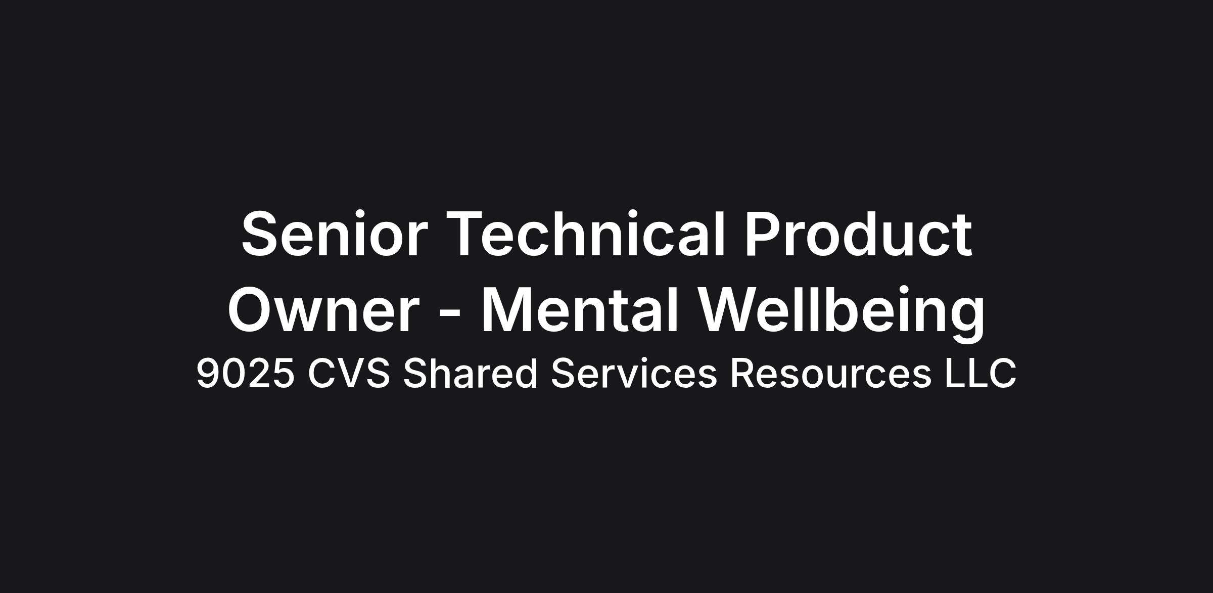 Senior Technical Product Owner - Mental Wellbeing