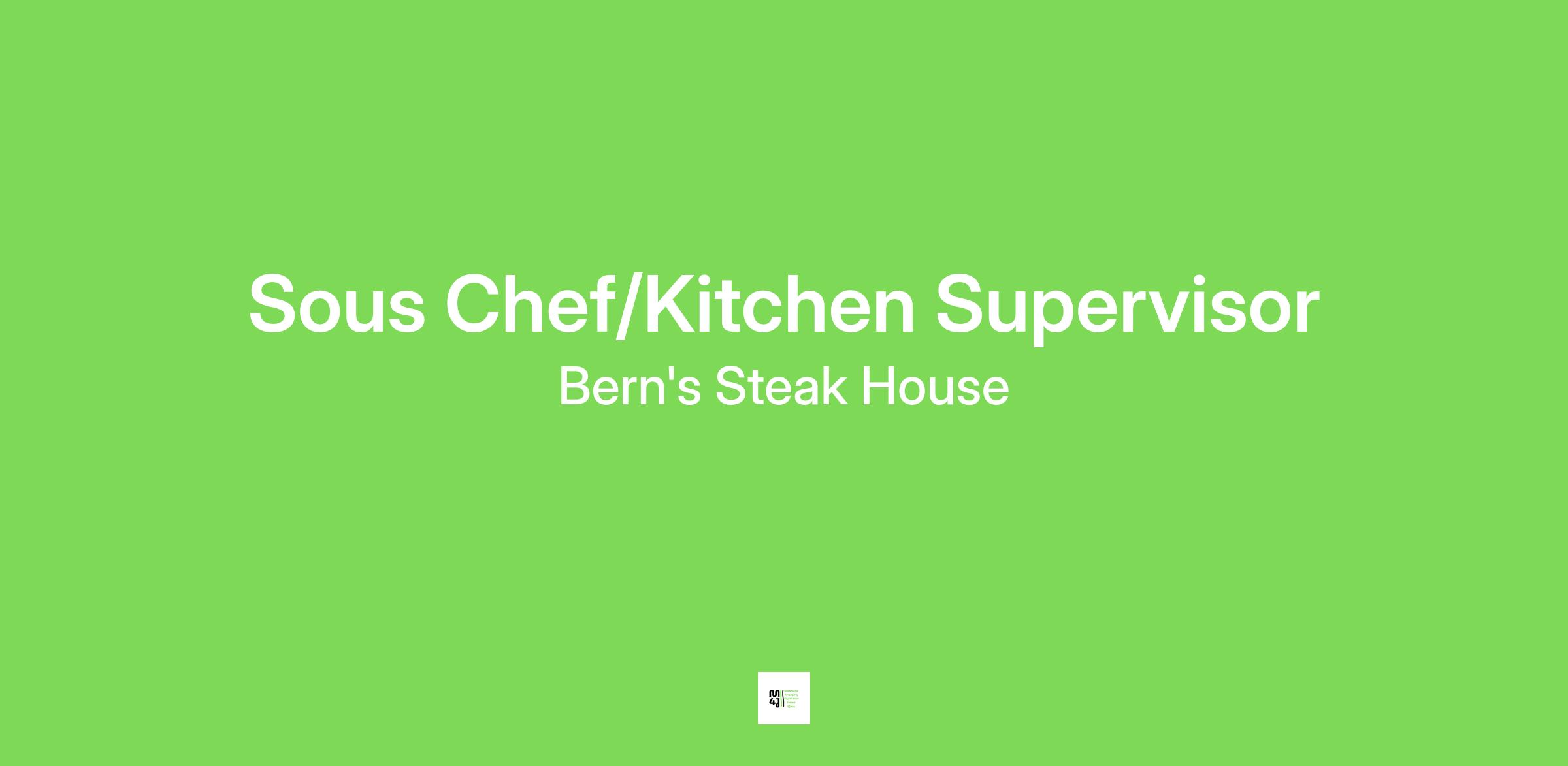 Bern's Steak House Sous Chefs are responsible for ensuring the exceptional preparation of food for all our guests and employees. They must have strong leadership qualities to develop and maintain a respectful environment that is consistent and in accordance with both the Executive Chef and Ownership's standards.
