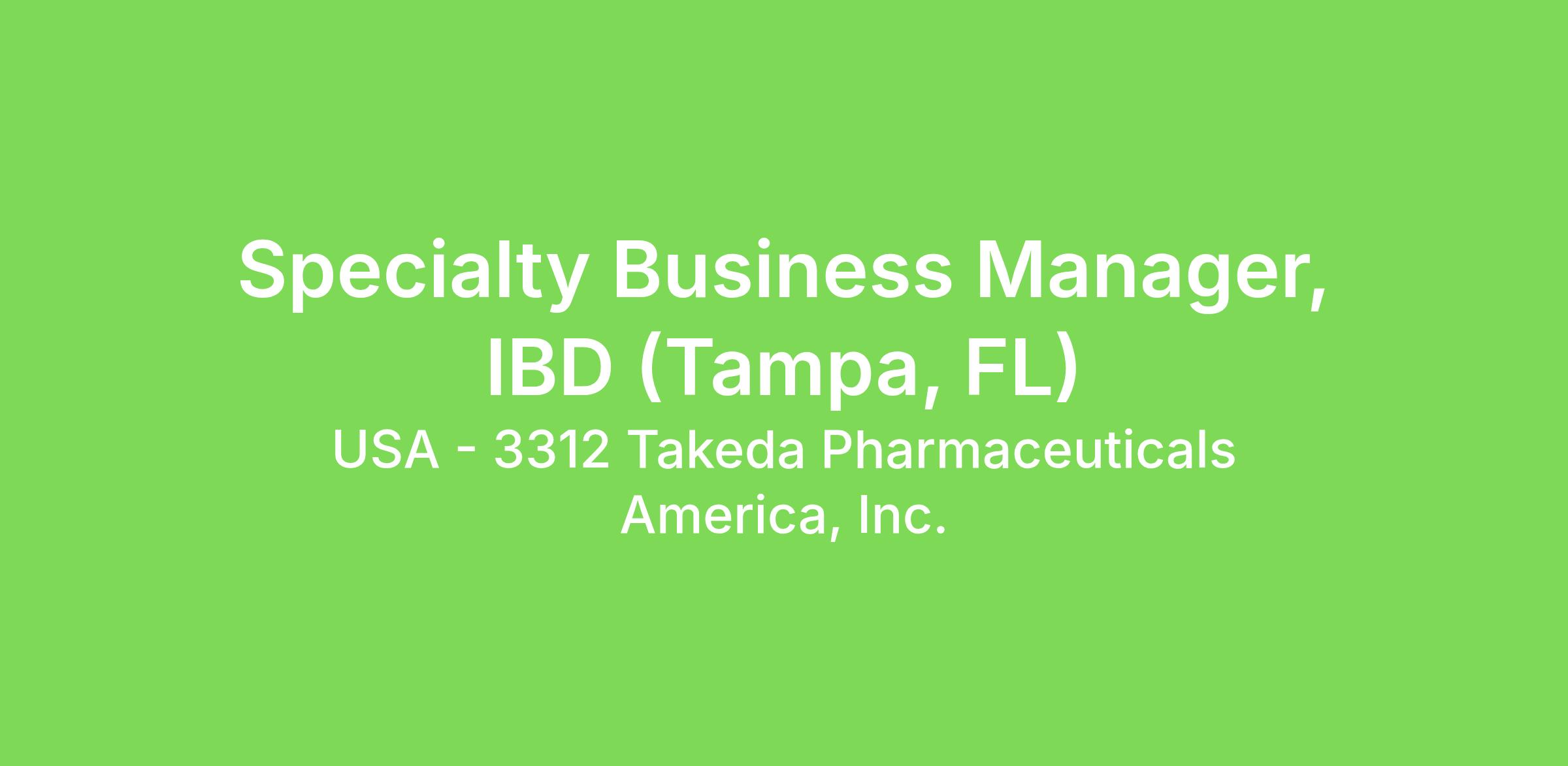 Are you looking for a patient-focused company that will inspire you and support your career? If so, be empowered to take charge of your future at Takeda. Join us as a Clinical Sales Specialist for our Tampa, FL territory. Here, everyone matters, and you will be an important contributor to our inspiring, bold mission.