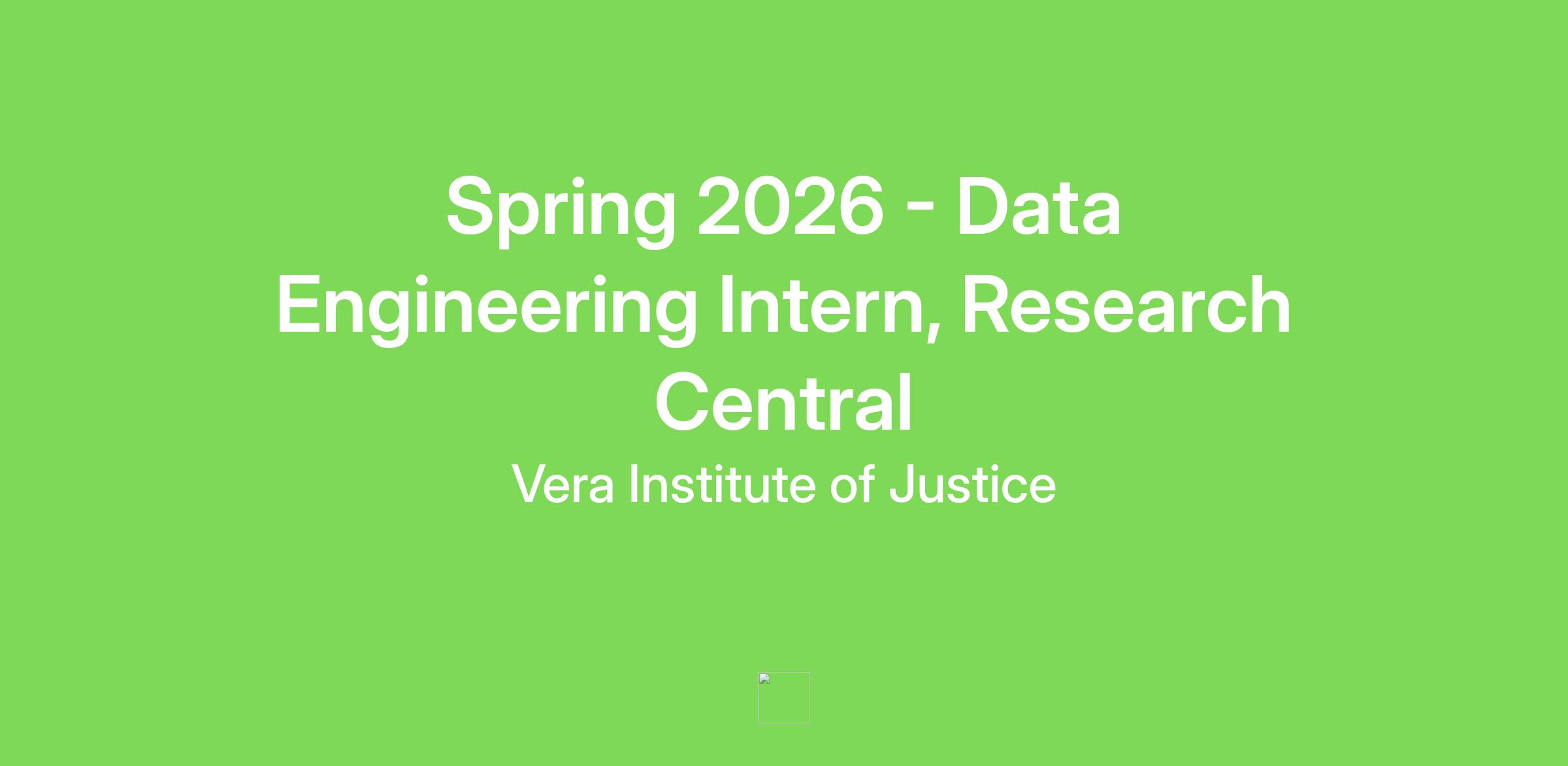 The Data Engineering Intern for the Research Department’s Central Data Science team at Vera is an opportunity for a college student or recent grad to immerse themselves into working in a data role at a non-profit organization. Their work will support the construction and maintenance of a centralized data ingestion/processing framework and data warehouse to support researchers who work with public and/or large-scale data in national and place-based initiatives.
