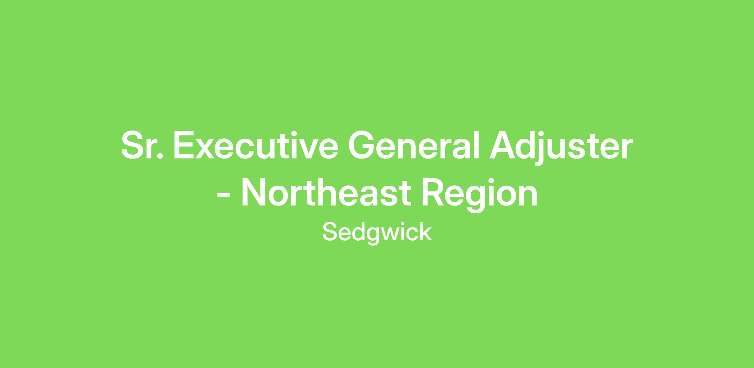 Sr. Executive General Adjuster - Northeast RegionPRIMARY PURPOSE: To investigate losses or claims internationally on any size National Account (Maintaining a minimum of five (5) national/international accounts with total combined anticipated revenue of at least $500,000) against insurance or other companies for personal, casualty, or property loss.