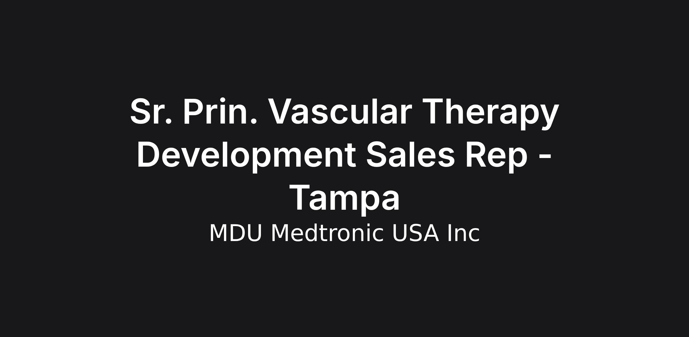 Sr. Prin. Vascular Therapy Development Sales Rep - Tampa