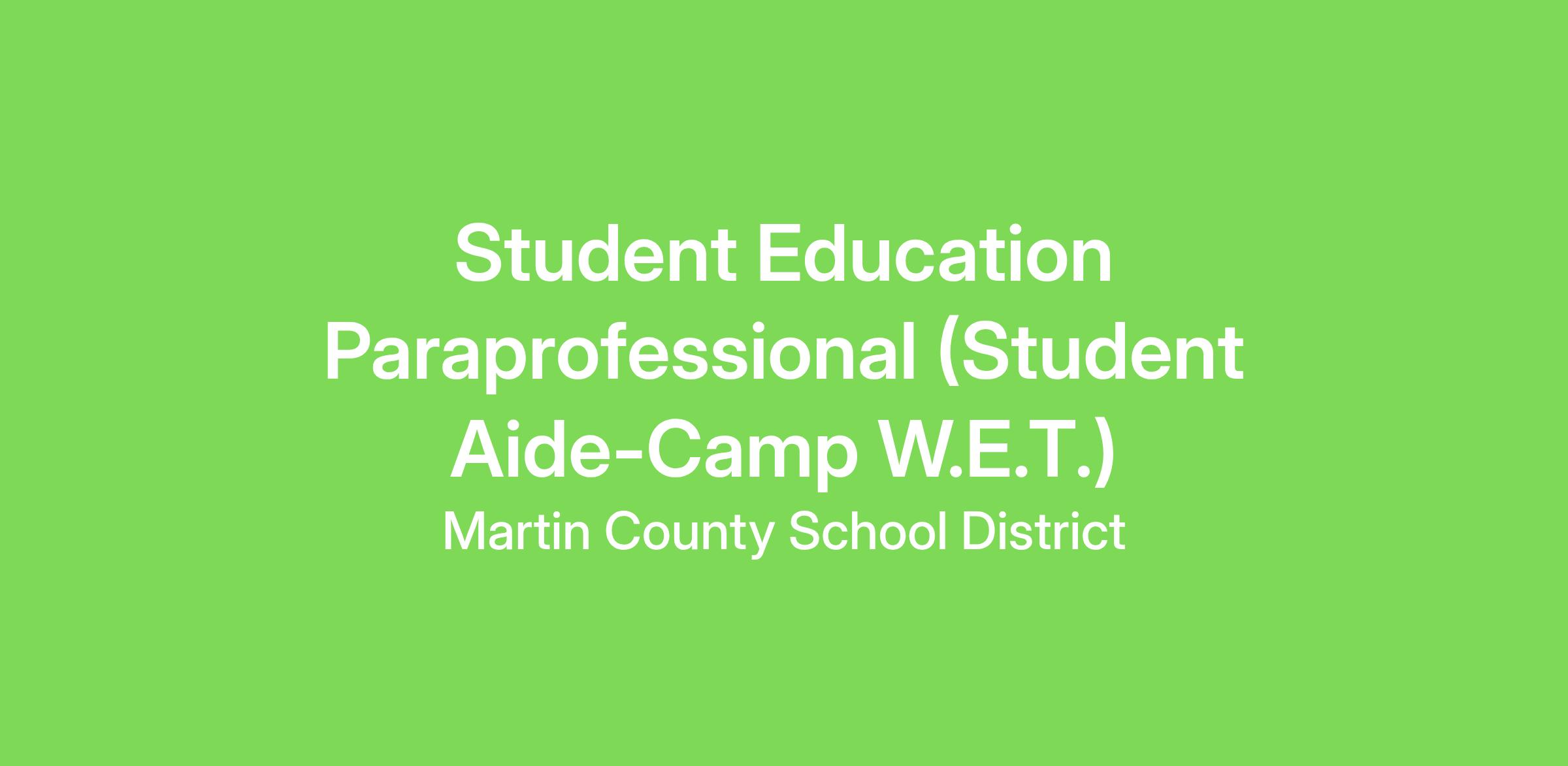 Student Education Paraprofessional (Student Aide-Camp W.E.T.)
