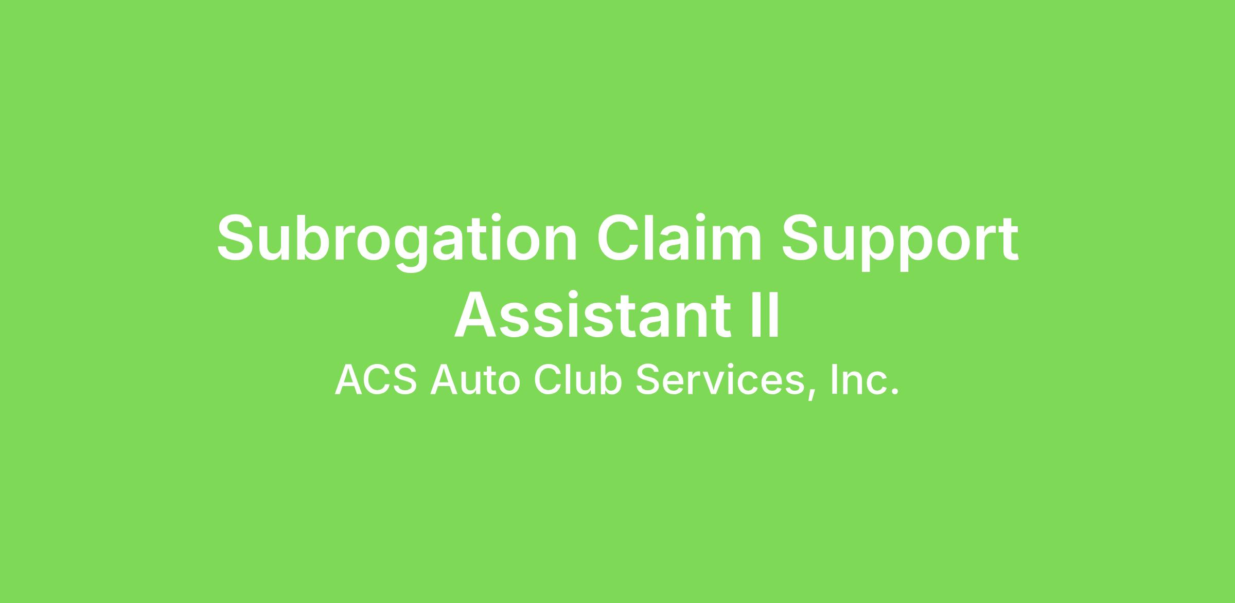 Subrogation Claim Support Assistant II- AAA The Auto Club Group