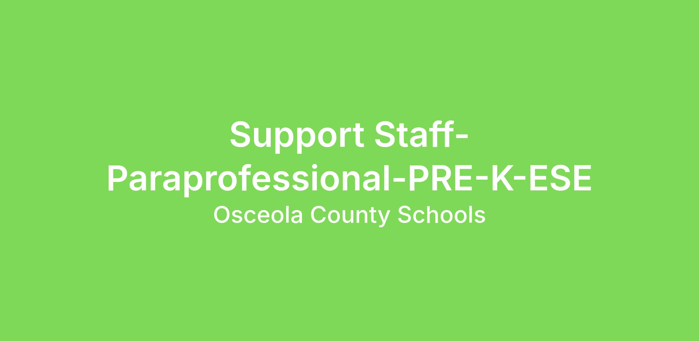 The PK/ESE Classroom assistant is responsible for assisting the teacher in carrying out the requirements of the Individual Education Plans of exceptional students. To attend a minimum of six (6) hours annually of PK/ESE inservice offered by the ESE department. Work requires occasional physical exertion and or muscular strain. Work involves several disagreeable elements and or exposure to job hazards where there is some possibility of injury.