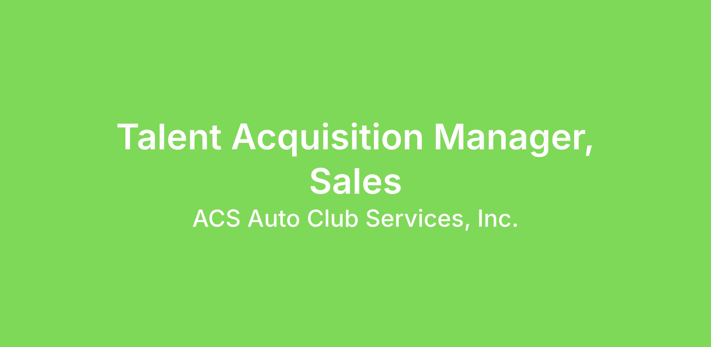 Talent Acquisition Manager, Sales - The Auto Club Group