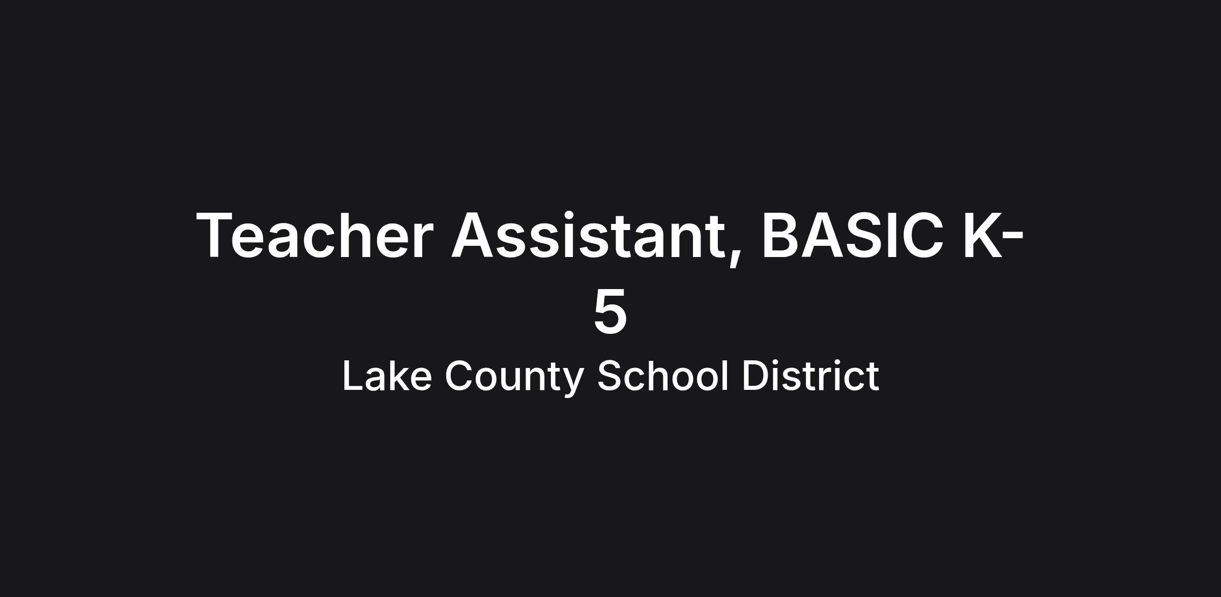 The Lake County School District is an Equal Opportunity Employer. In compliance with the Americans with Disabilities Act, The Lake County School District will provide reasonable accommodations to qualified individuals with disabilities and encourages both prospective and current employees to discuss potential accommodations with the employer.
