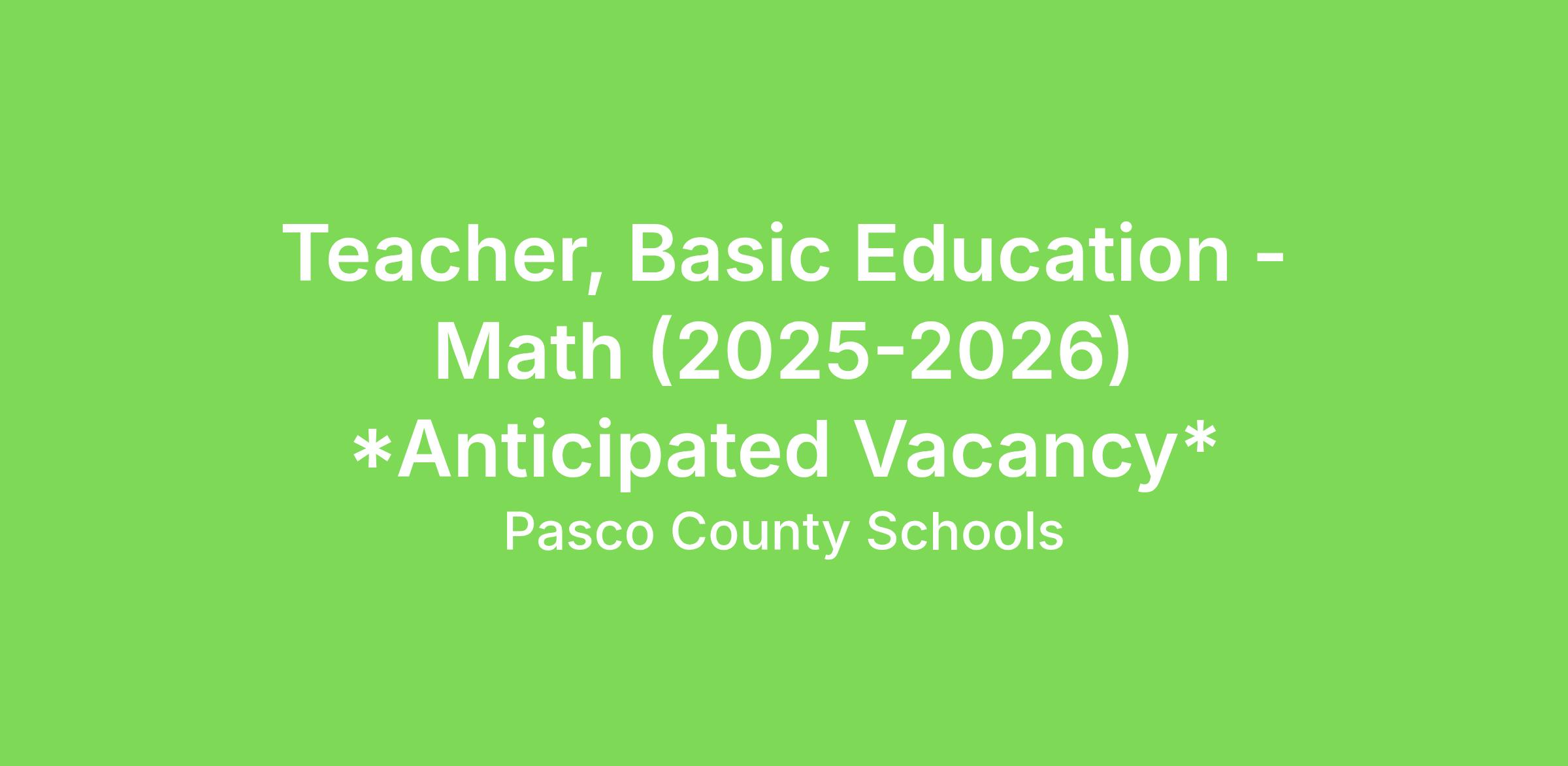 Teacher, Basic Education - Math (2025-2026) *Anticipated Vacancy*