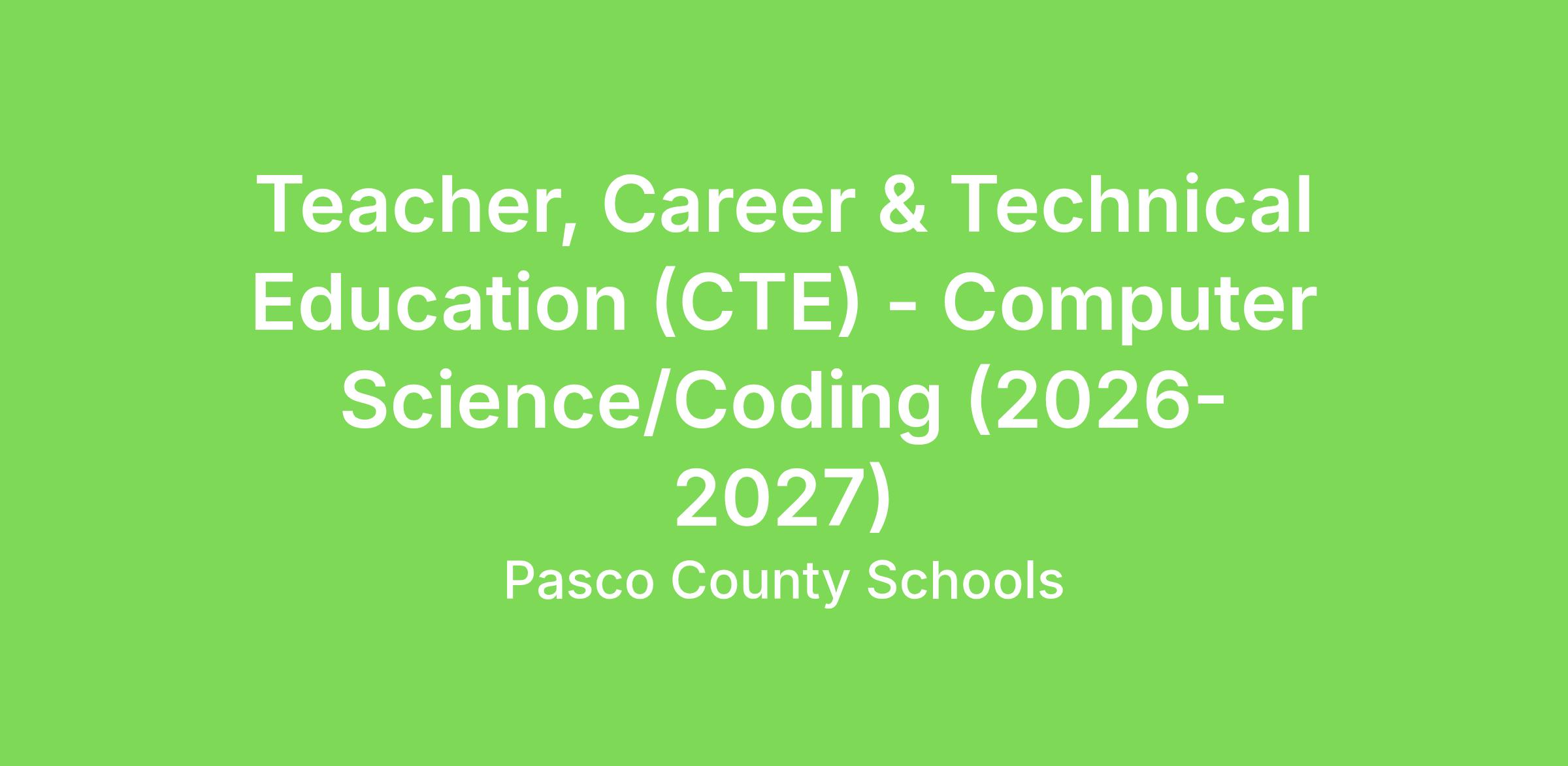 Teacher, Career & Technical Education (CTE) - Computer Science/Coding (2026-2027)