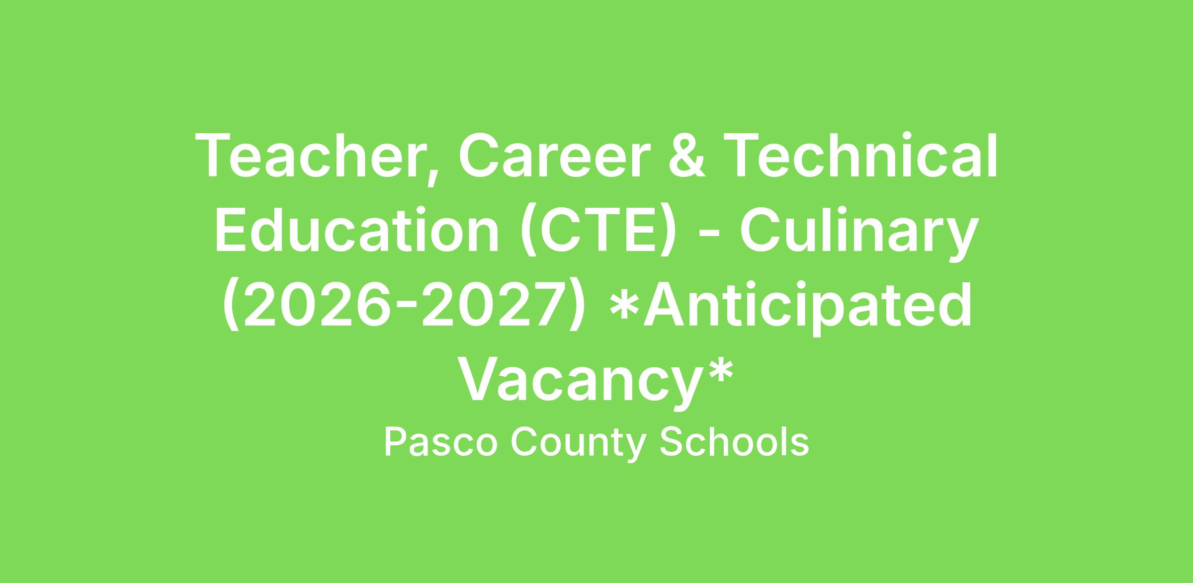 Teacher, Career & Technical Education (CTE) - Culinary (2026-2027) *Anticipated Vacancy*