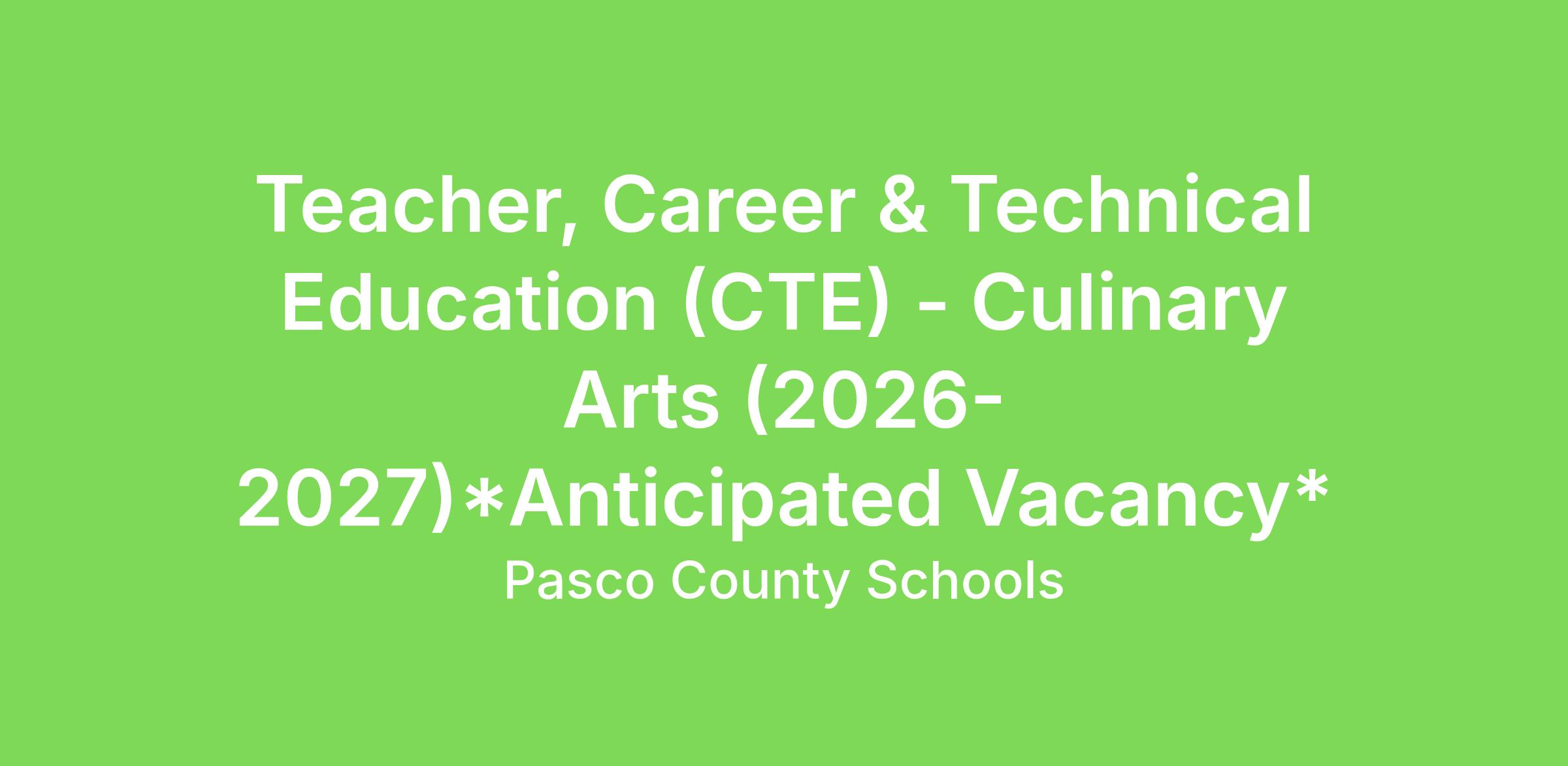 Responsible for developing, planning, organizing, and implementing a Career and Technical Education (CTE) instructional program for students through curriculum, lesson plans, and educational programs, while ensuring that all procedures are followed to maintain safety and security and to meet federal, state, and local regulations.