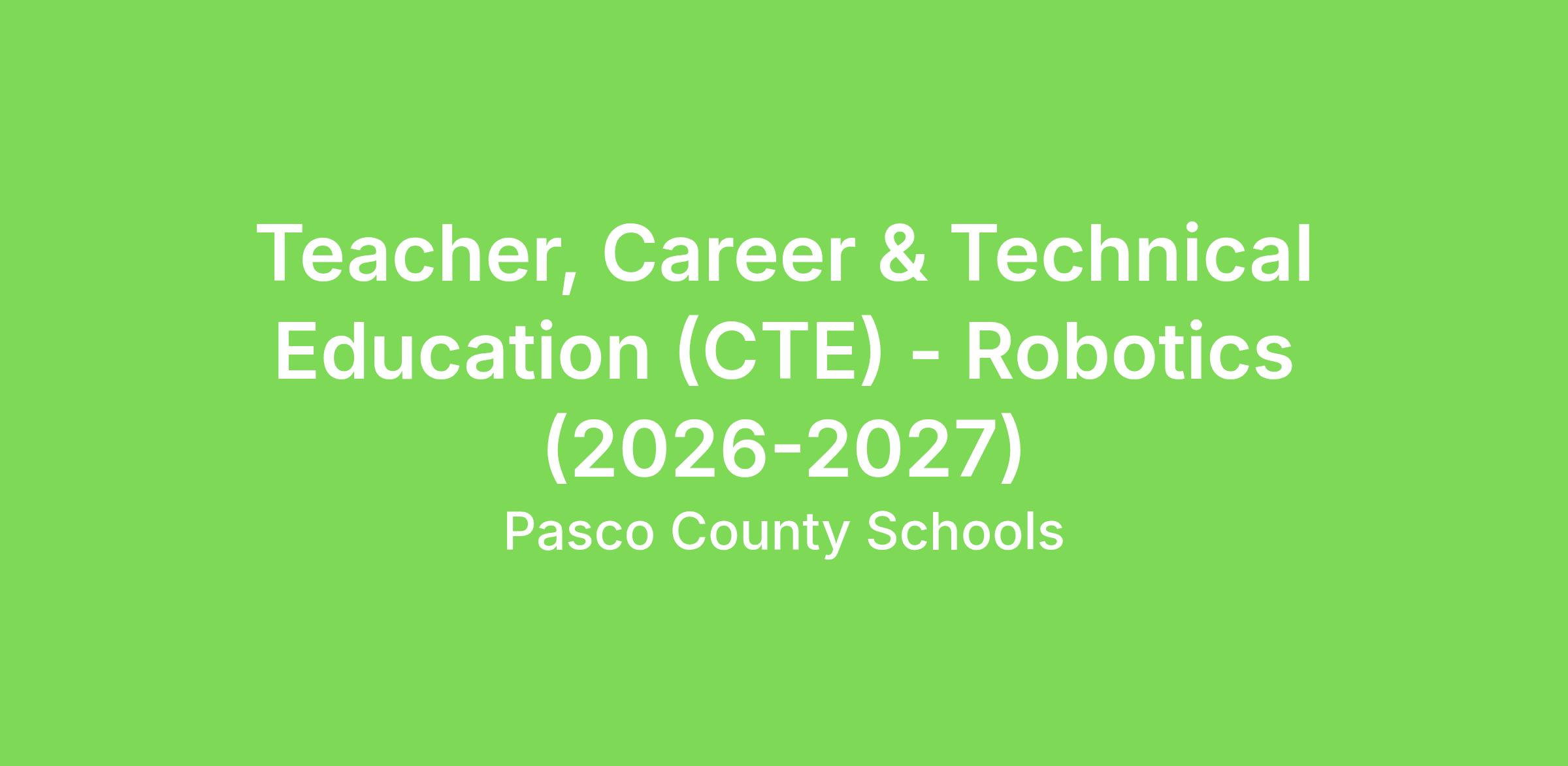 Responsible for developing, planning, organizing, and implementing a Career and Technical Education (CTE) instructional program for students through curriculum, lesson plans, and educational programs, while ensuring that all procedures are followed to maintain safety and security and to meet federal, state, and local regulations.