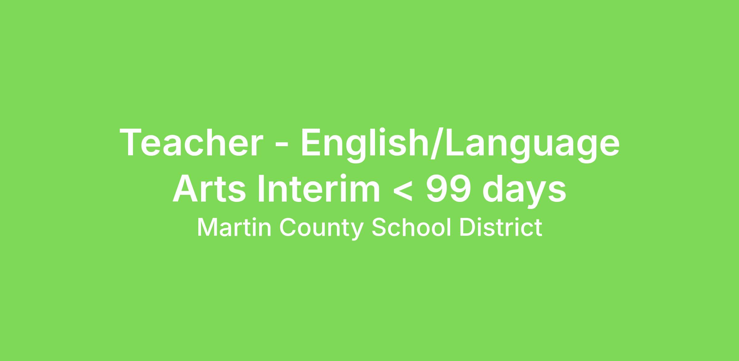 Teacher - English/Language Arts Interim < 99 days