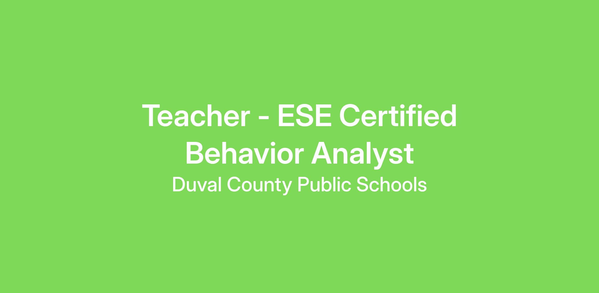 Certifications & Licenses: Board certification as a Behavior Analyst AND Florida Department of Education teaching certification in at least one (1) area of Exceptional Student Education, Guidance and Counseling or School Psychology. Autism Spectrum Disorder Endorsement preferred.