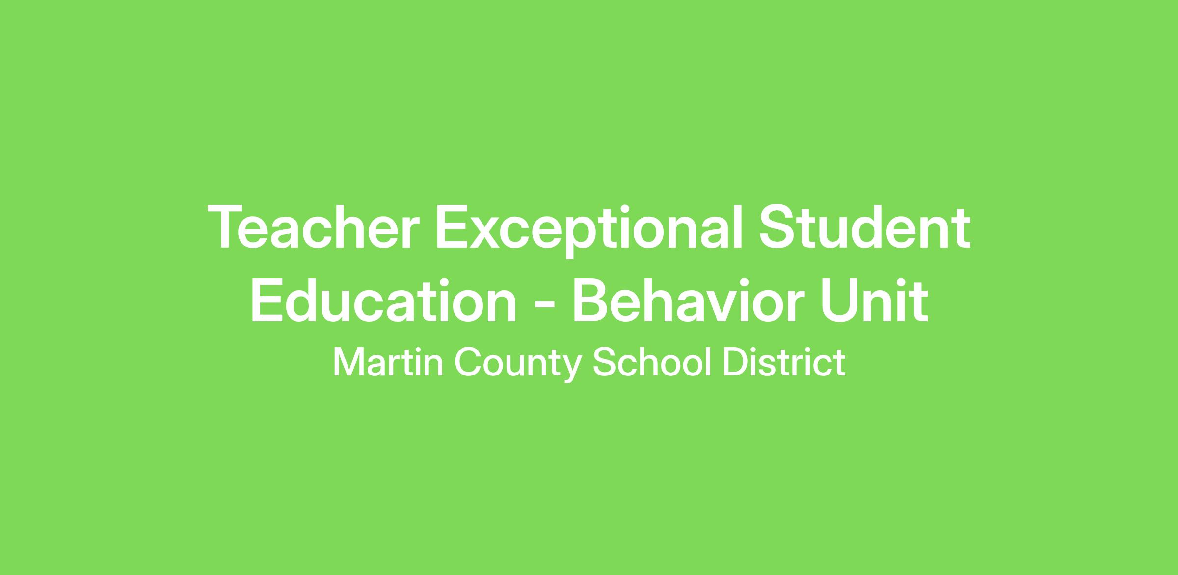 Teacher Exceptional Student Education - Behavior Unit