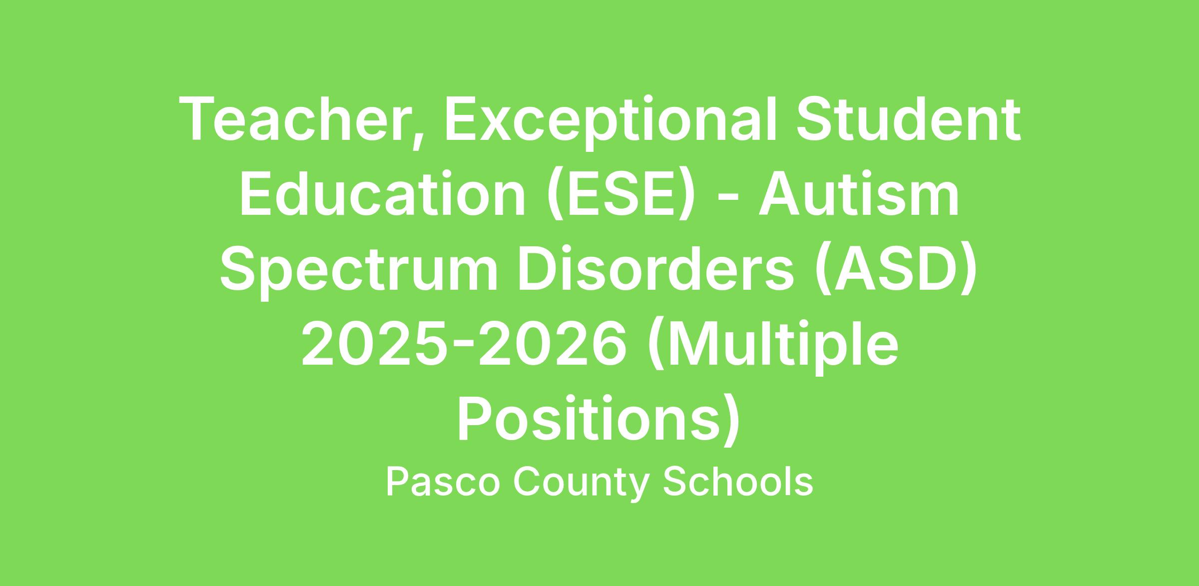 Specialty: Special Education - Autism Spectrum Disorders (ASD)