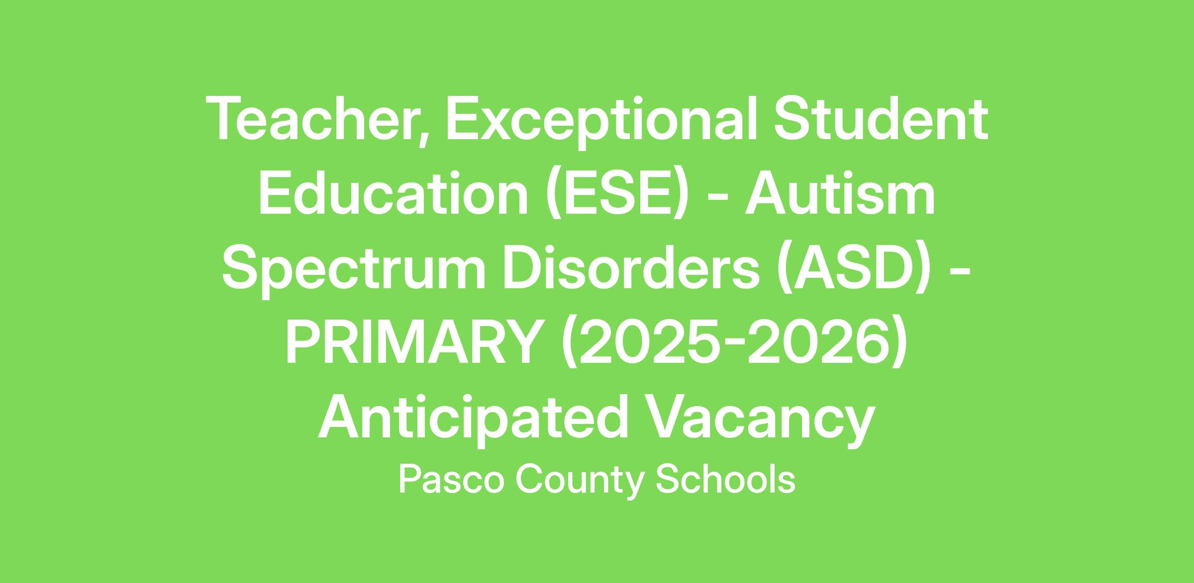 Specialty: Special Education - Autism Spectrum Disorders (ASD)
