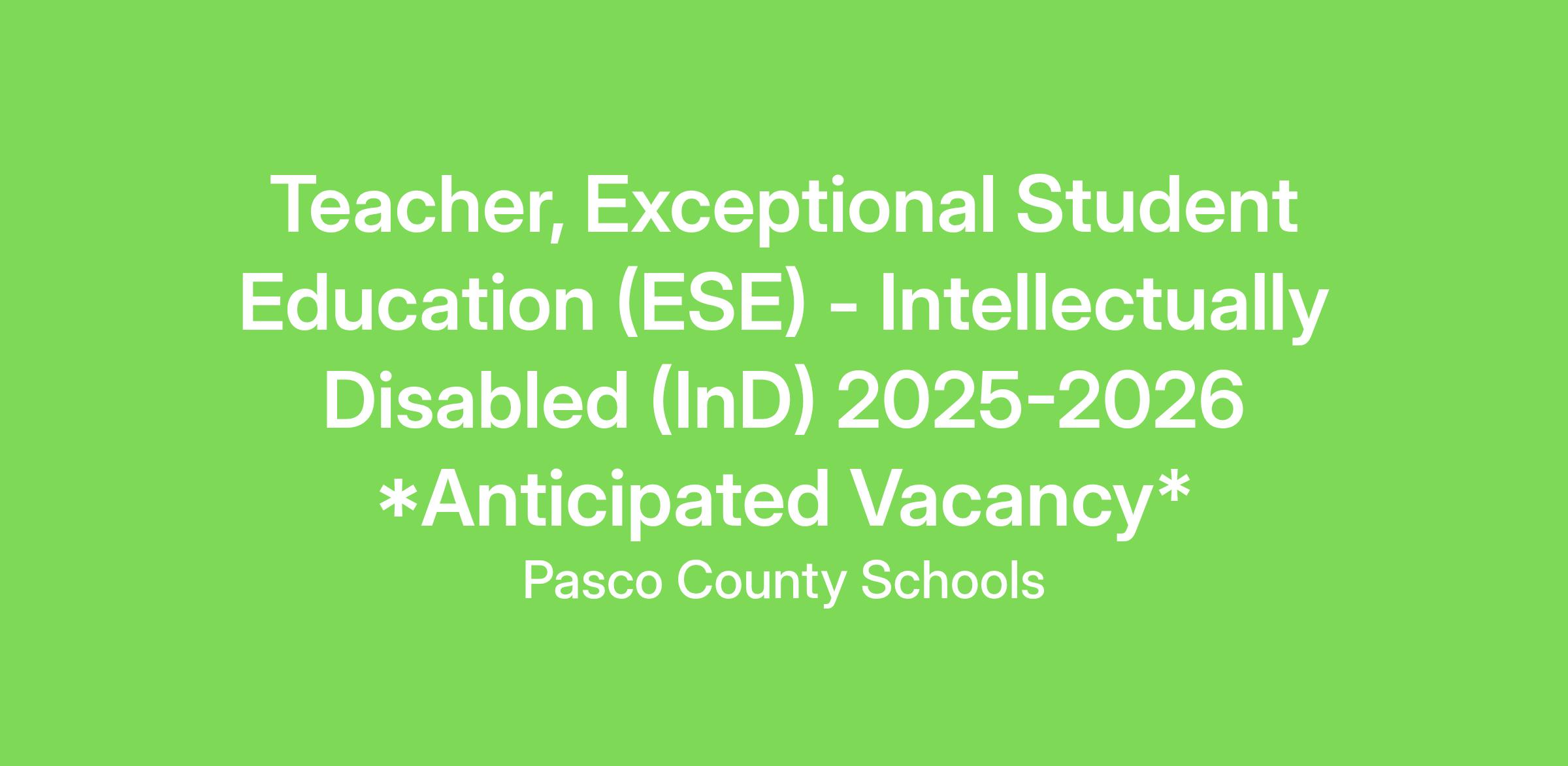 Responsible for developing, planning, organizing, and implementing an instructional program for exceptional student education (ESE) students through curriculum, lesson plans, educational programs and individual education plan development while ensuring that all procedures are followed to maintain safety and security and to meet federal, state, local regulations.