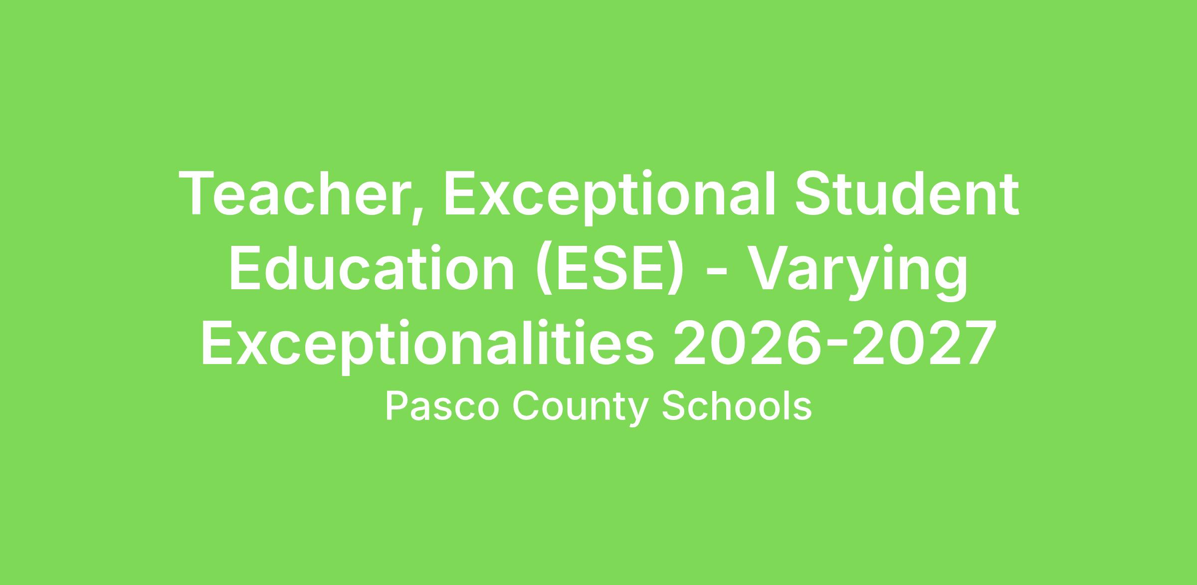 Responsible for developing, planning, organizing, and implementing an instructional program for exceptional student education (ESE) students through curriculum, lesson plans, educational programs and individual education plan development while ensuring that all procedures are followed to maintain safety and security and to meet federal, state, local regulations.