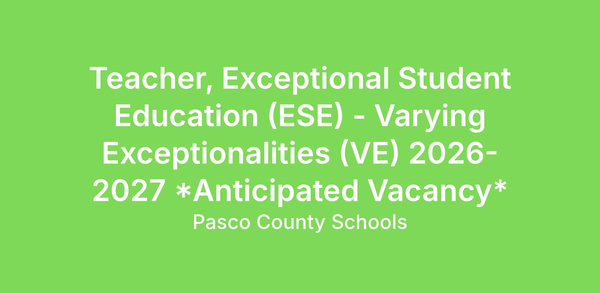 Responsible for developing, planning, organizing, and implementing an instructional program for exceptional student education (ESE) students through curriculum, lesson plans, educational programs and individual education plan development while ensuring that all procedures are followed to maintain safety and security and to meet federal, state, local regulations.