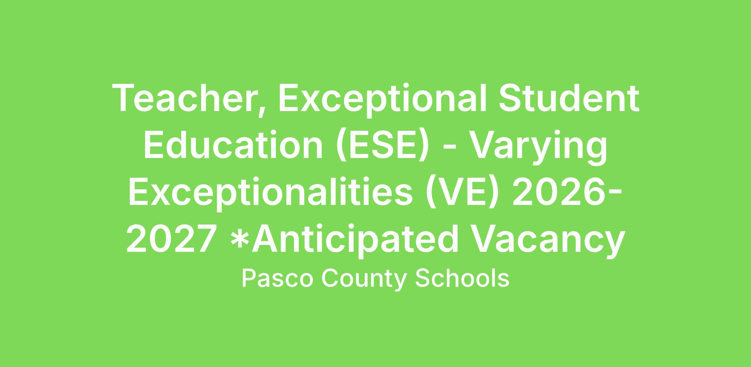 Responsible for developing, planning, organizing, and implementing an instructional program for exceptional student education (ESE) students through curriculum, lesson plans, educational programs and individual education plan development while ensuring that all procedures are followed to maintain safety and security and to meet federal, state, local regulations.