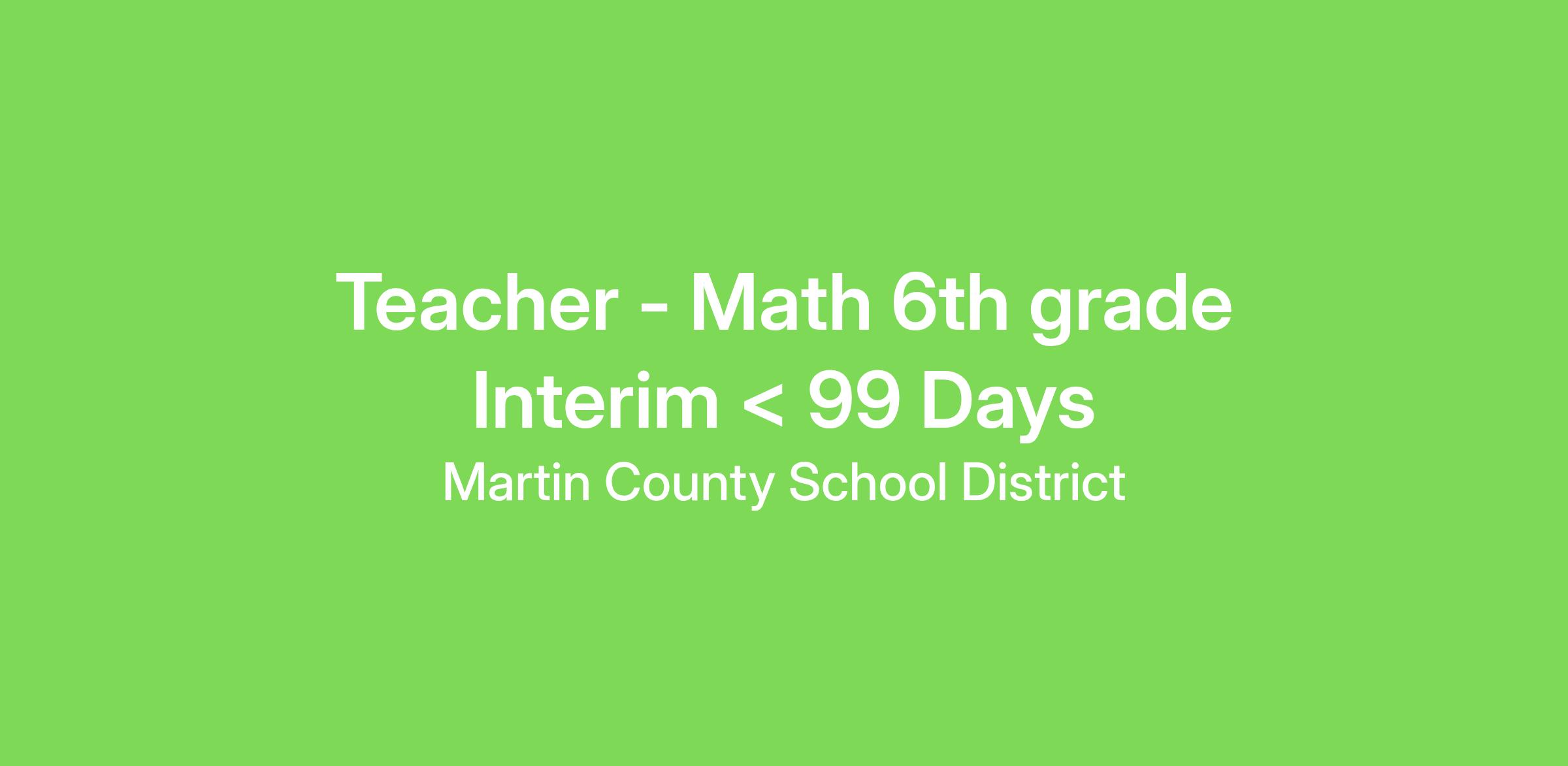 Teacher - Math 6th grade Interim < 99 Days