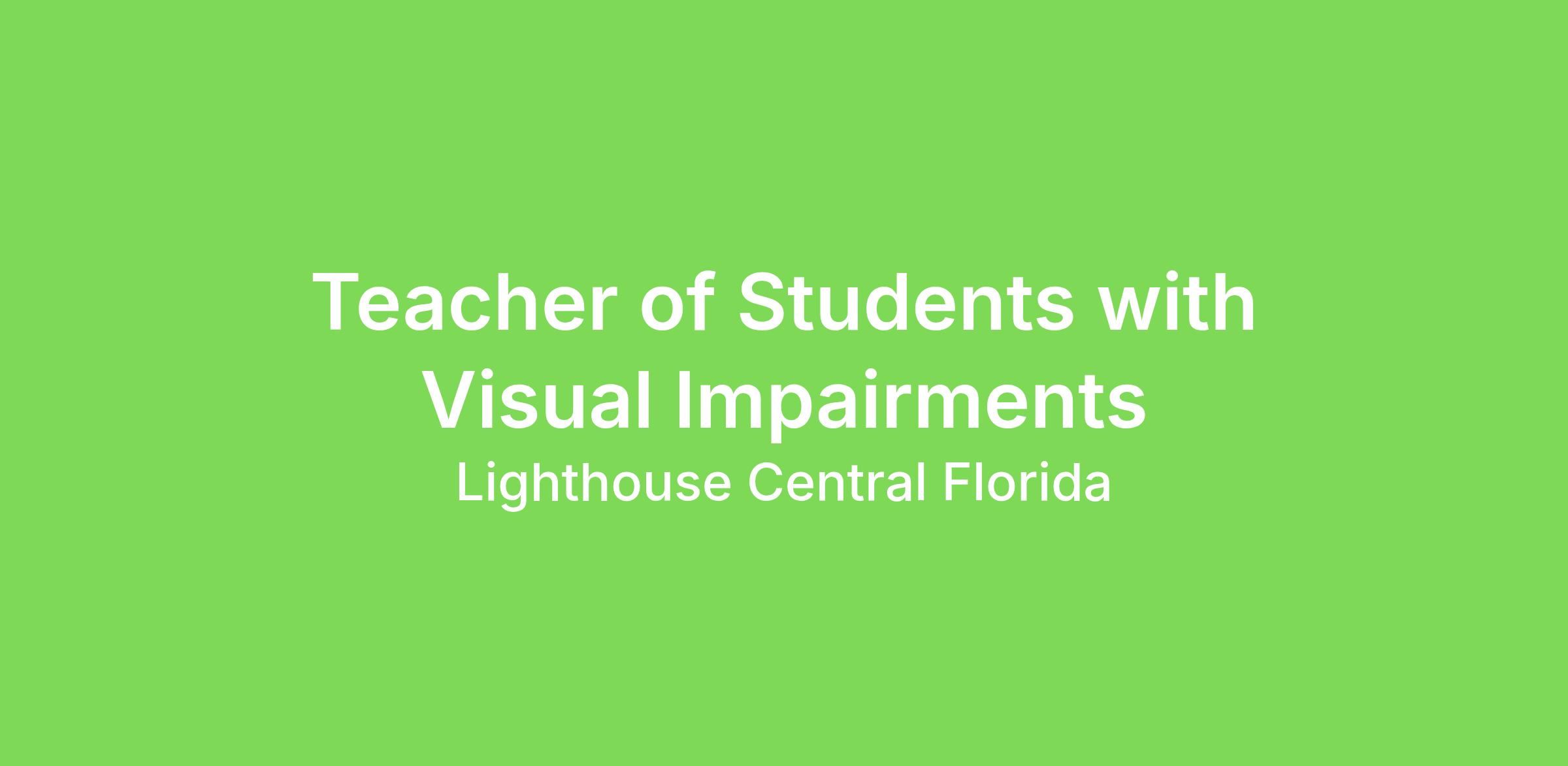 We are seeking a Teacher of the Visually Impaired (TVI) who will provide expertise and collaborate on vision-specific program curricula and instruction for the Children's and Transition Program. This role will participate in and support the Children's/Transition Program and the values and mission of Lighthouse Central Florida (LCF) as a rehabilitation team member, and will maintain the confidentiality of program participants in accordance with State and Federal regulations. This role may also support IEP-related contracts within the community, travel to schools, and provide educational supports to students.
