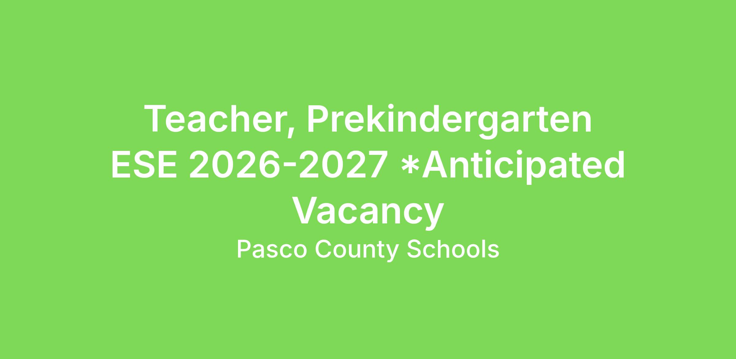 Responsible for developing, planning, organizing, and implementing an instructional program for Pre-Kindergarten Exceptional Student Education (ESE) students through curriculum, lesson plans, and educational programs, while ensuring that all procedures are followed to maintain safety and security and to meet federal, state, and local regulations.
