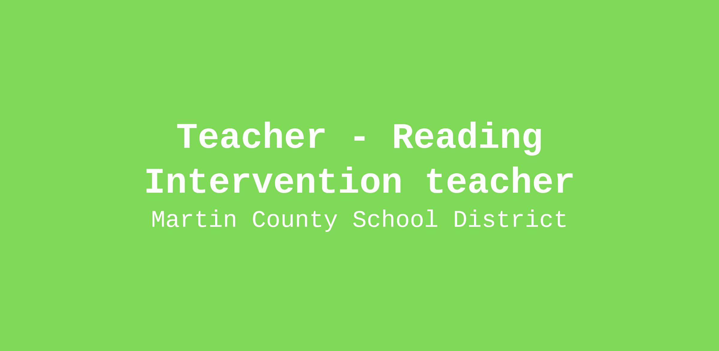 Teacher - Reading Intervention teacher