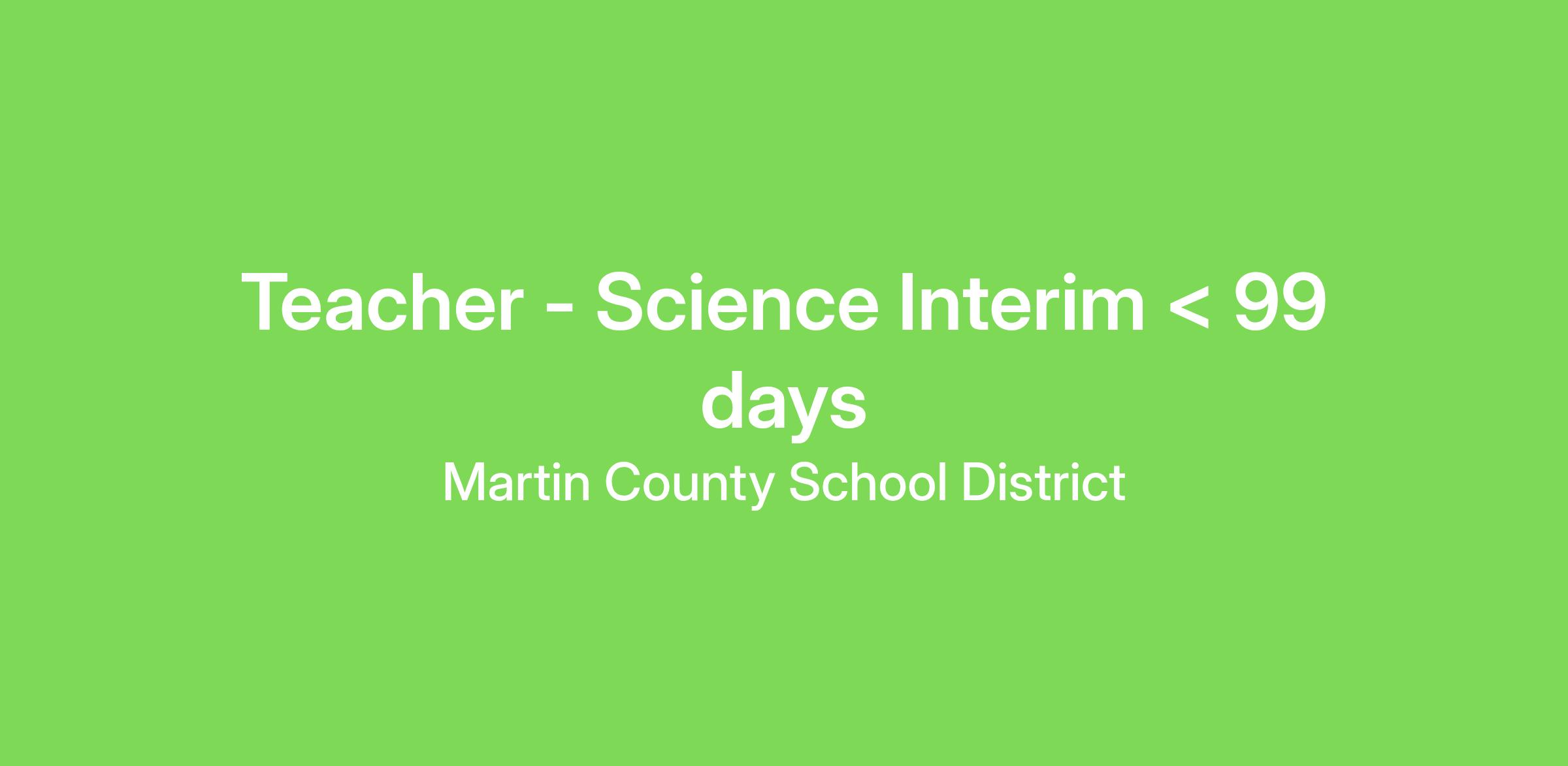 Teacher - Science Interim < 99 days