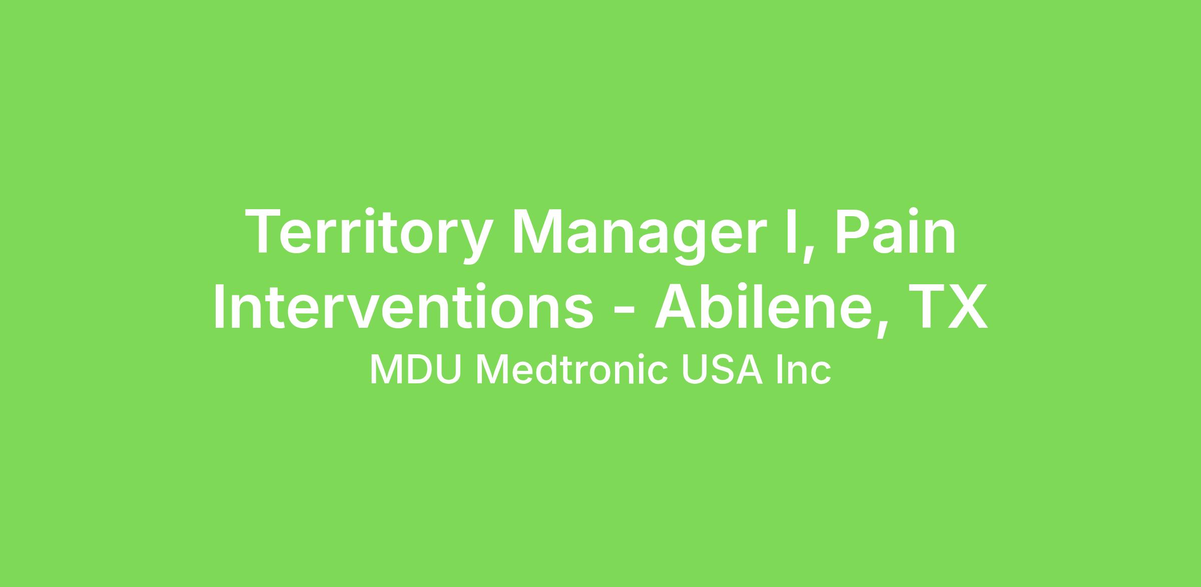 At Medtronic, the Territory Manager I is an intermediate level role that is considered a sales representative in our Pain and Interventional Therapies. This role will assist in managing a large territory base of business and growth by initiating, supporting and developing strategic implanting centers and assisting in developing key referral networks. In certain geographies, this role will be the account/implanter relationship contact for assigned territory’s customer needs including account level reimbursement responsibility. This includes coordination of all support activities and development of sales partnerships with distribution alliances. This role reports directly to a District Sales Manager, partners with other Sales Representative peers as well as with a Clinical Specialist team.