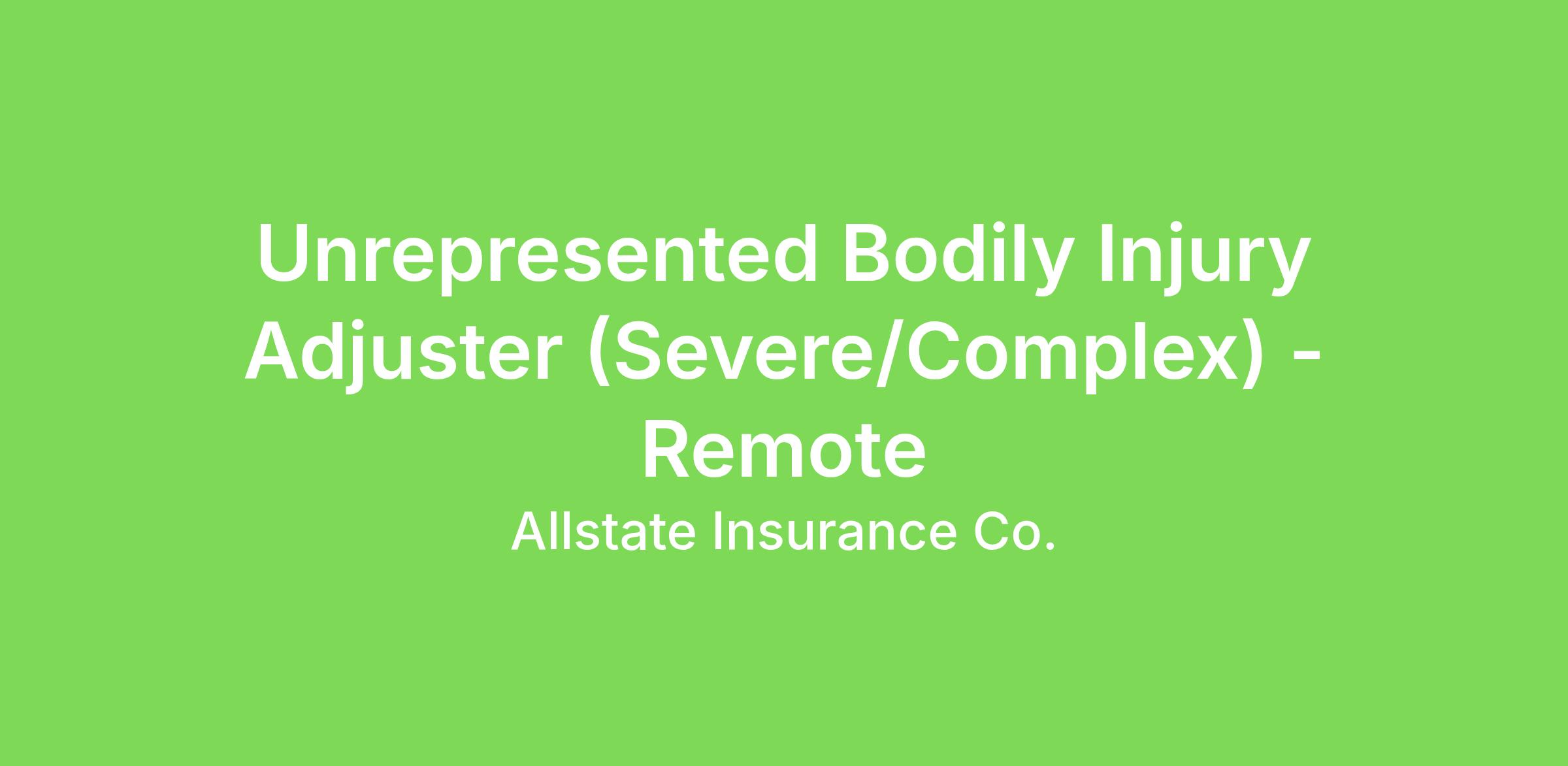 This job is responsible for investigating severe/complex, unrepresented bodily injury claims.You’ll wear a few hats to fill a few roles throughout your day that all require a level of experience: